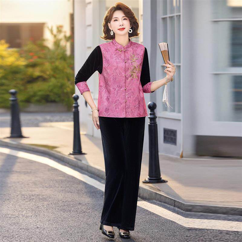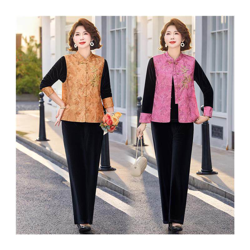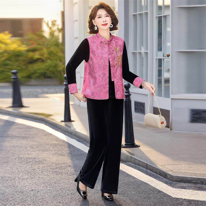 新中式风妈妈春装马甲三件套2026新款中老年春秋款气质显瘦套装女