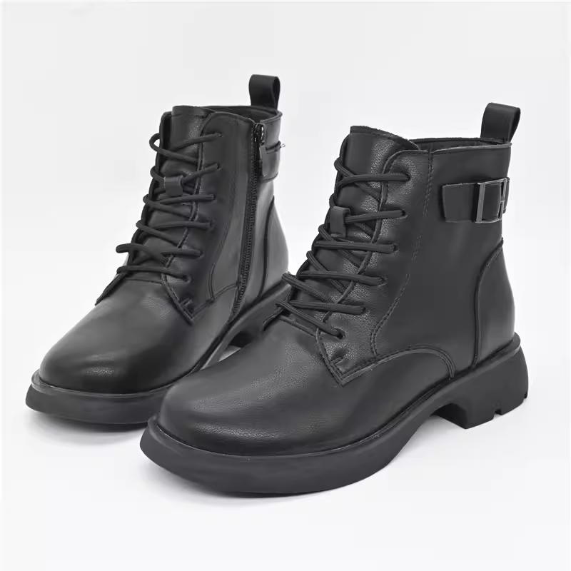 大东马丁靴23冬季新款休闲粗跟短靴侧拉链系带圆头女鞋23D1208