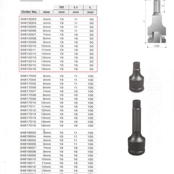 台湾霹雳马套筒3/8*3~16*50公制內六角标准批头64815003~64815016
