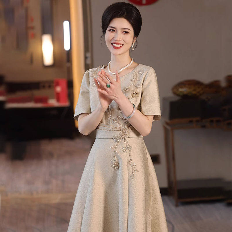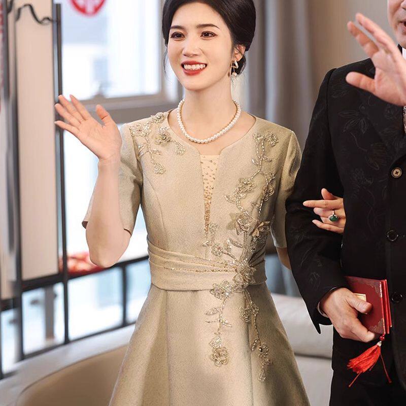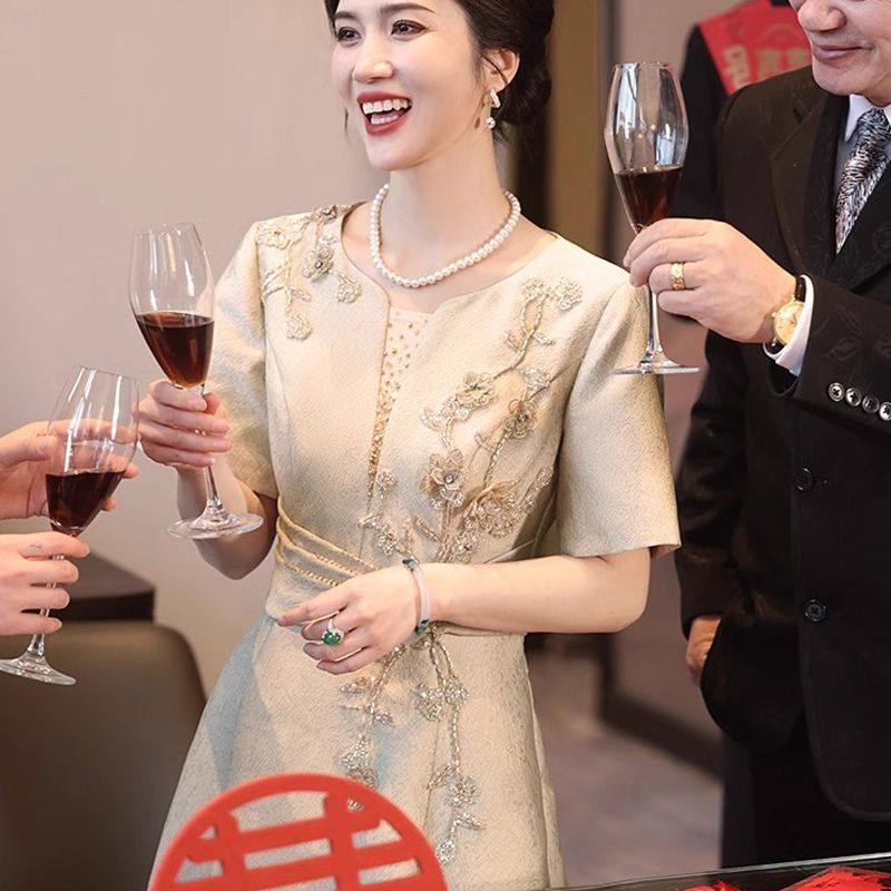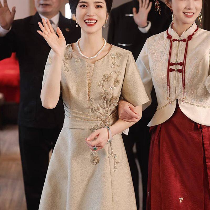 妈妈婚宴礼服2025夏季新款气质年轻款喜婆婆装高端连衣裙敬酒服