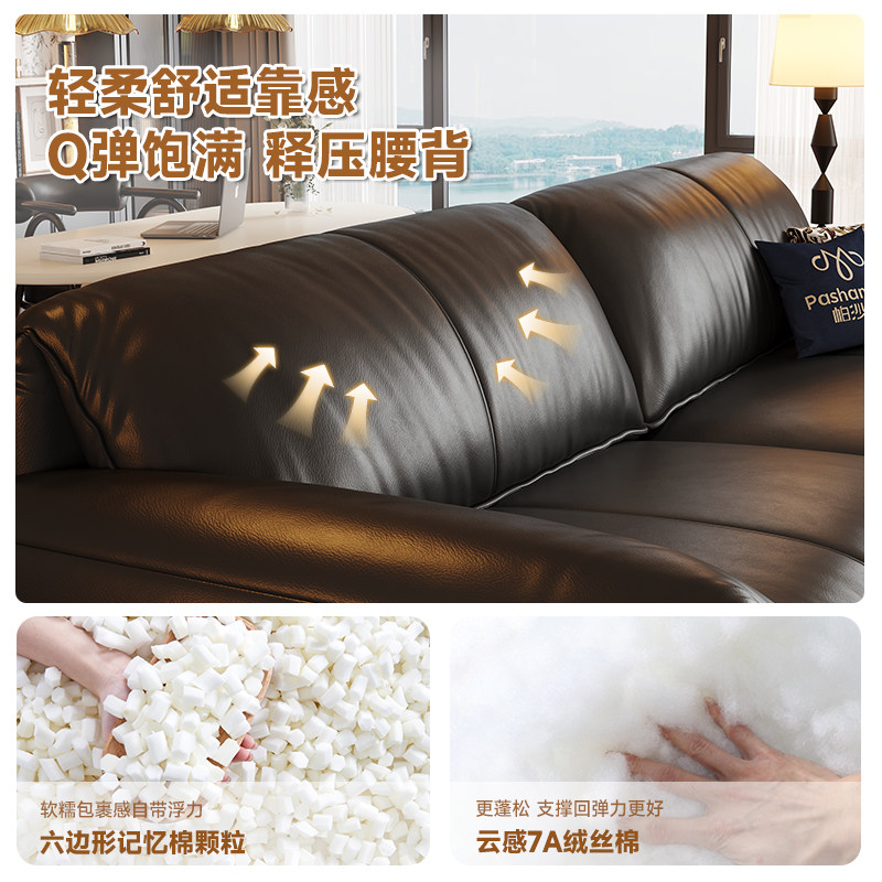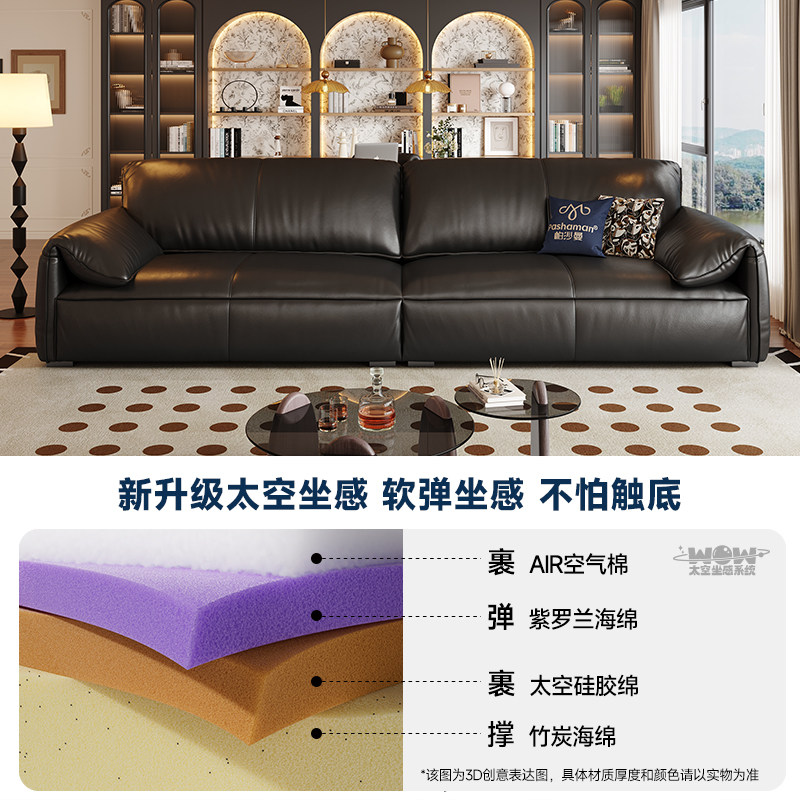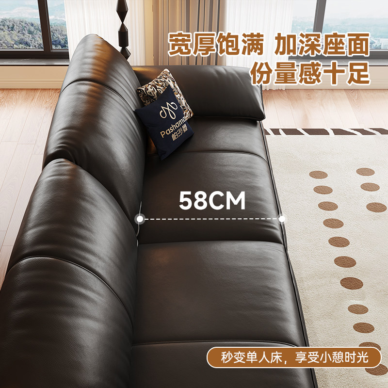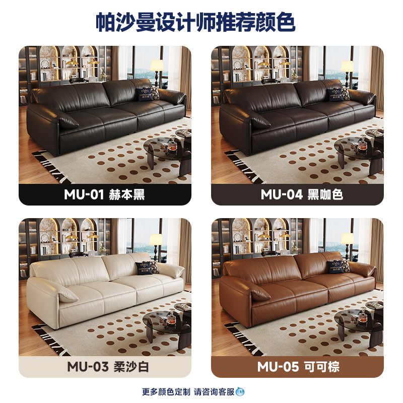 帕沙曼大象耳朵真皮沙发头层牛皮意式极简客厅小户型直排超宽坐深