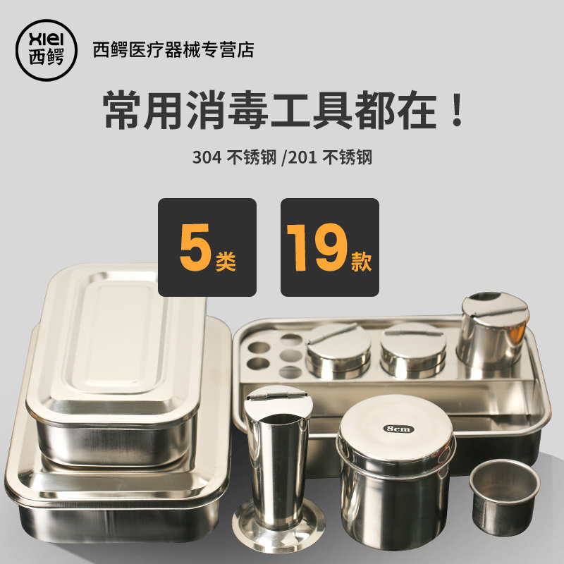 医用消毒盒方盘换药碗不锈钢治疗盘器械托盘酒精缸弯盘腰盘镊子筒