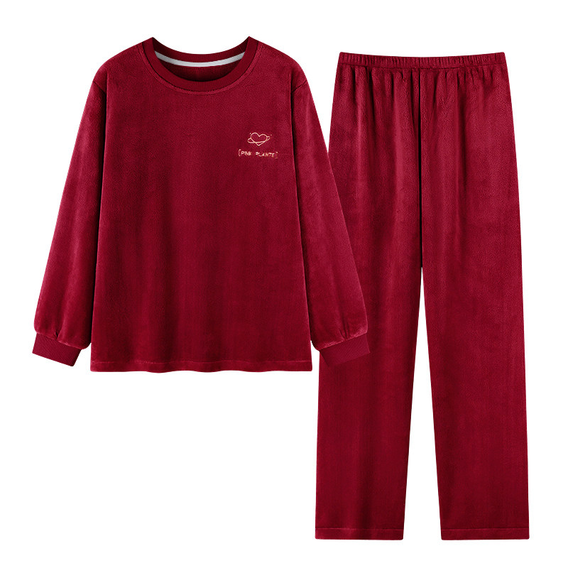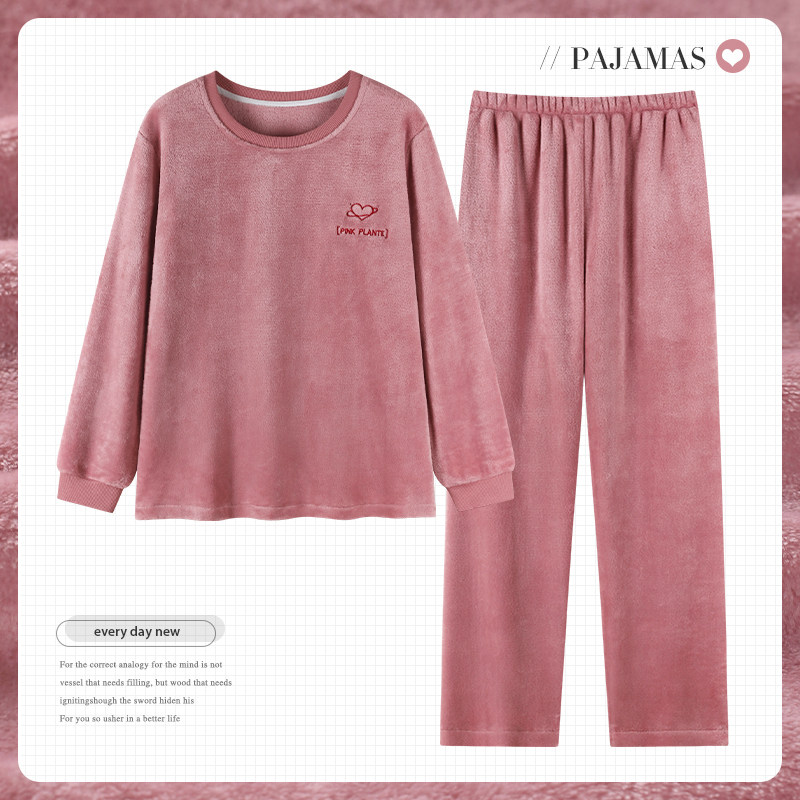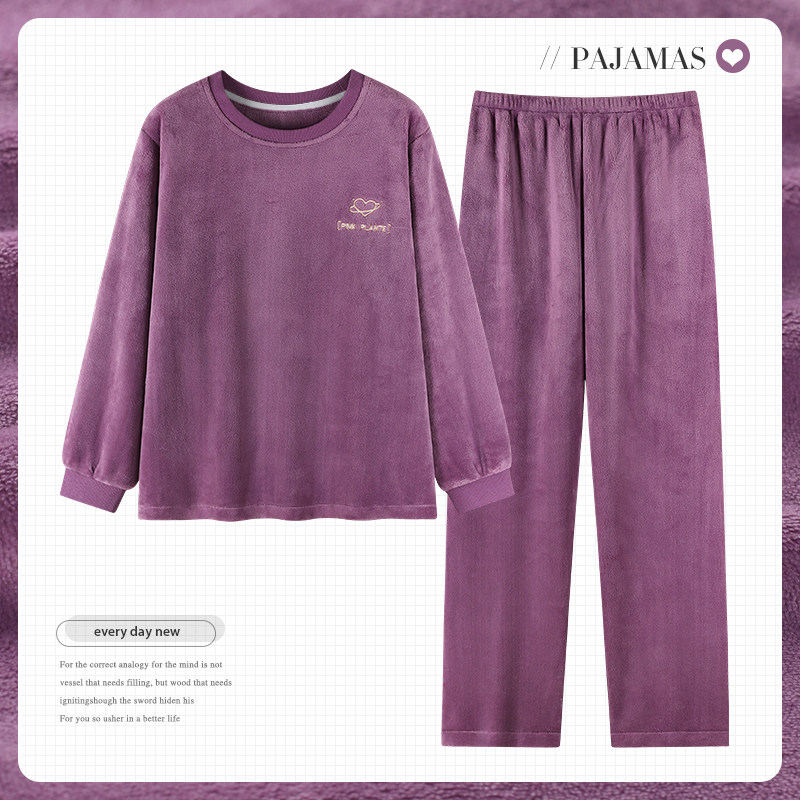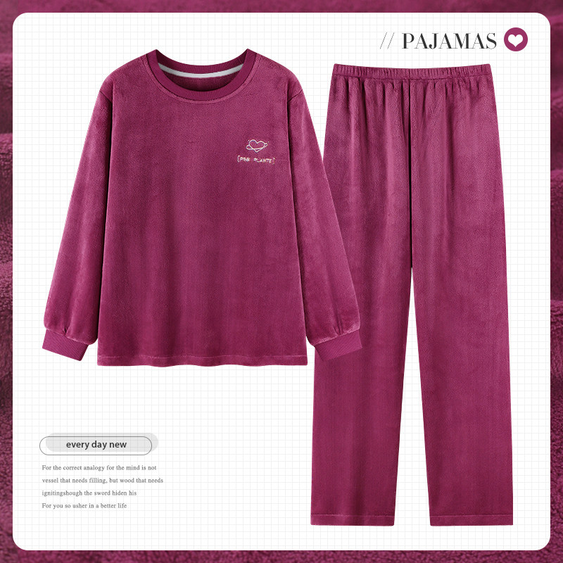 妈妈款珊瑚绒女士睡衣秋冬保暖圆领套装新款法兰绒大码女款家居服