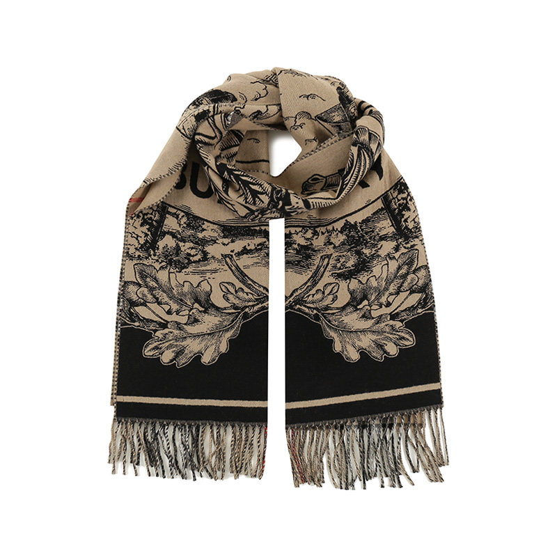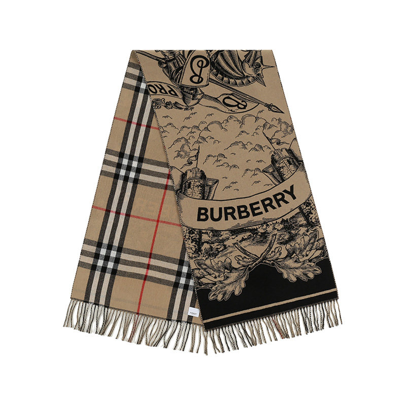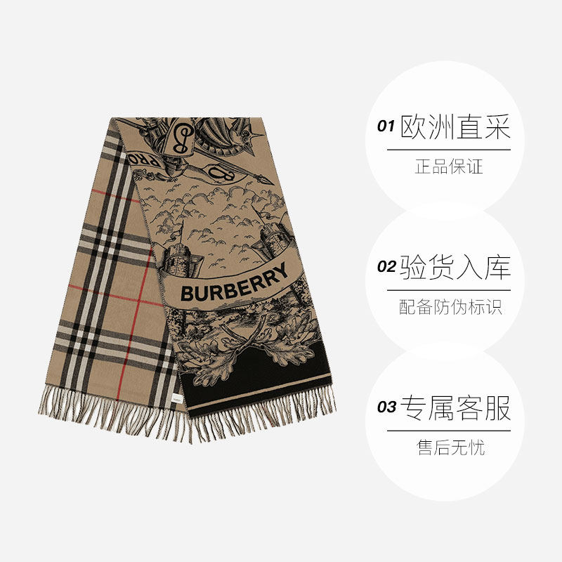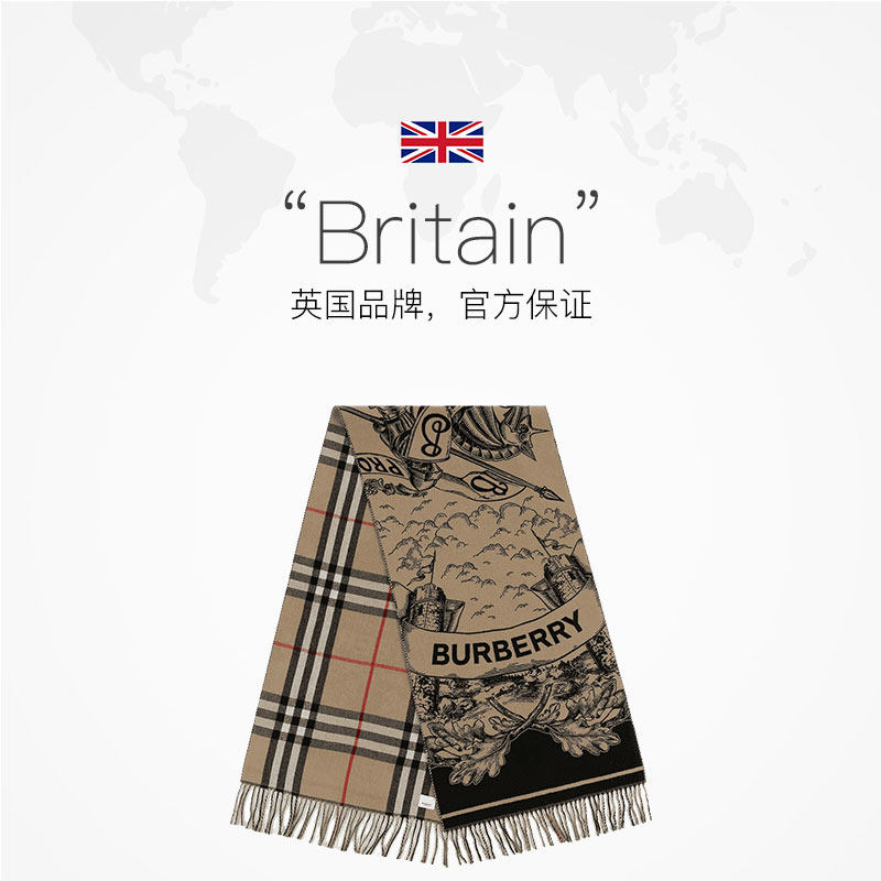 【自营】博柏利 BURBERRY 中性款山羊绒双面流苏保暖围巾披肩格子