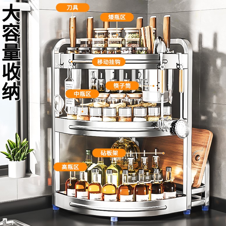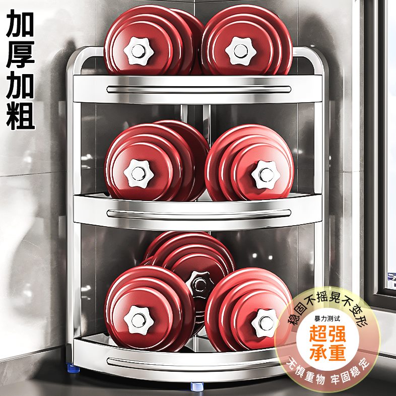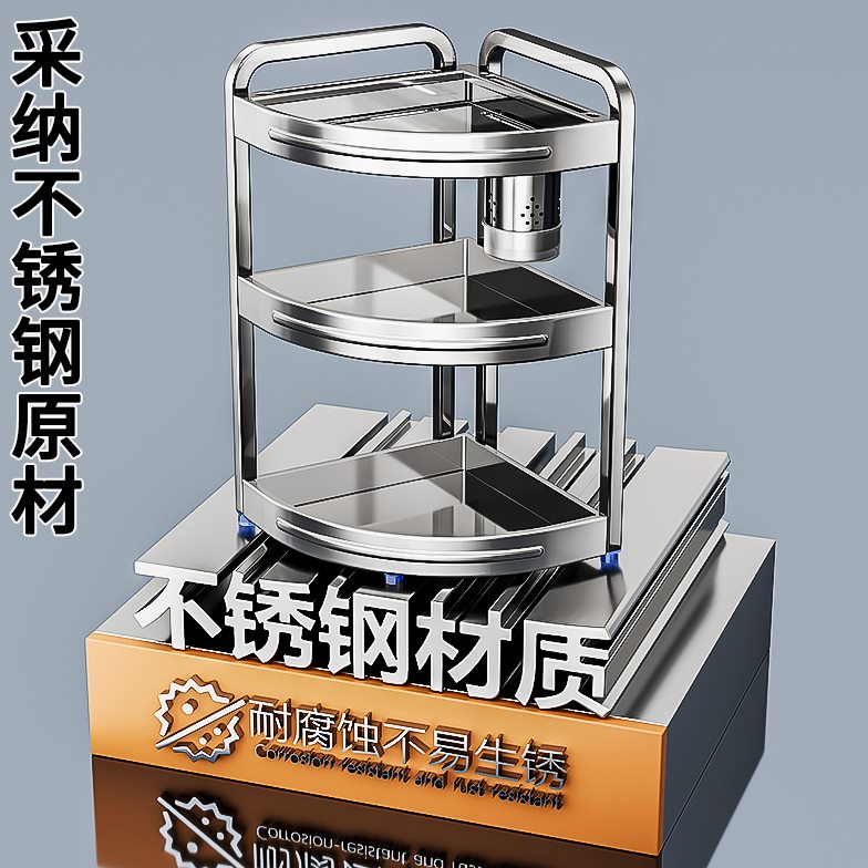 厨房转角置物架不锈钢拐角三角架调味香料品收纳刀架壁挂落地家用