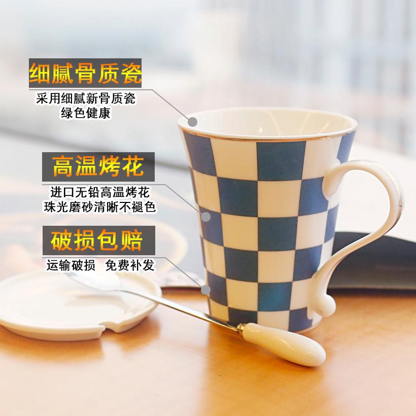 创意陶瓷杯子带盖勺欧式咖啡杯牛奶早餐茶杯马克杯情侣家用喝水杯