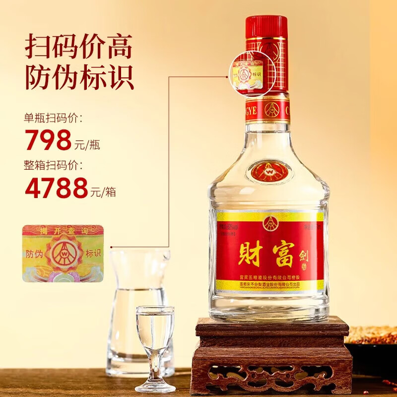 五粮液股份 财富剑52度浓香型白酒整箱白酒礼盒 宴请自饮送礼