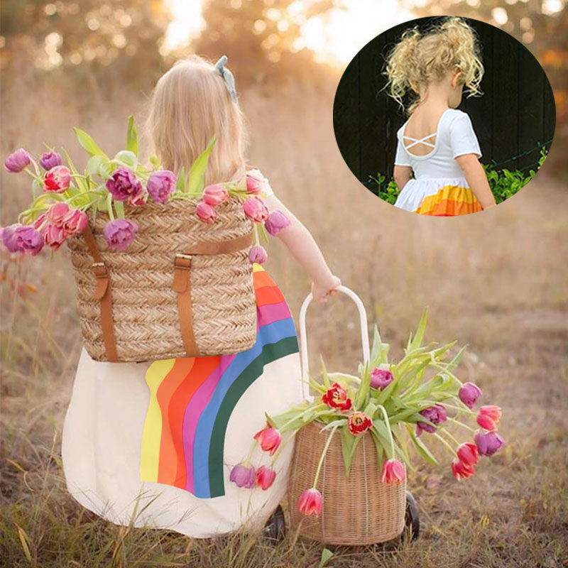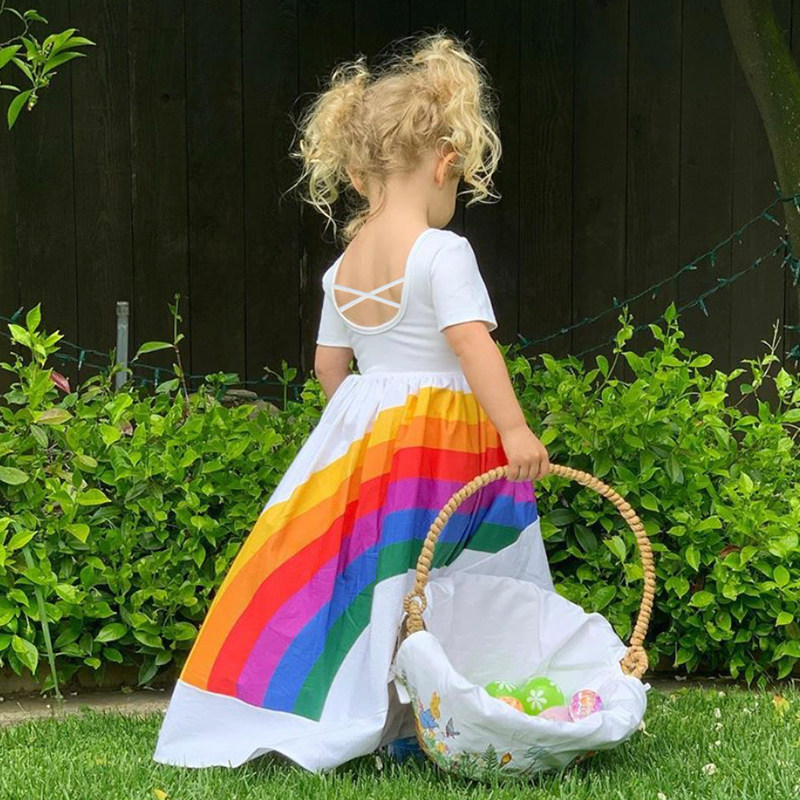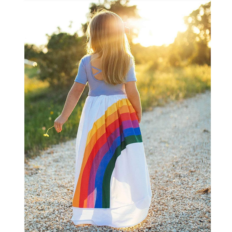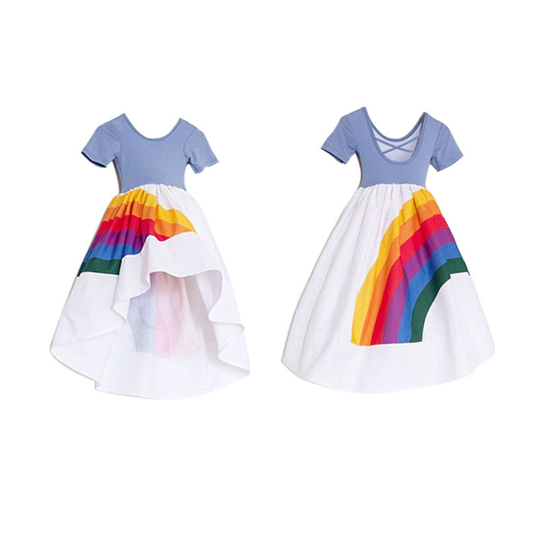 女童连衣裙夏新款彩虹亲子长裙母女装洋气沙滩裙ins 纯棉公主蓬裙