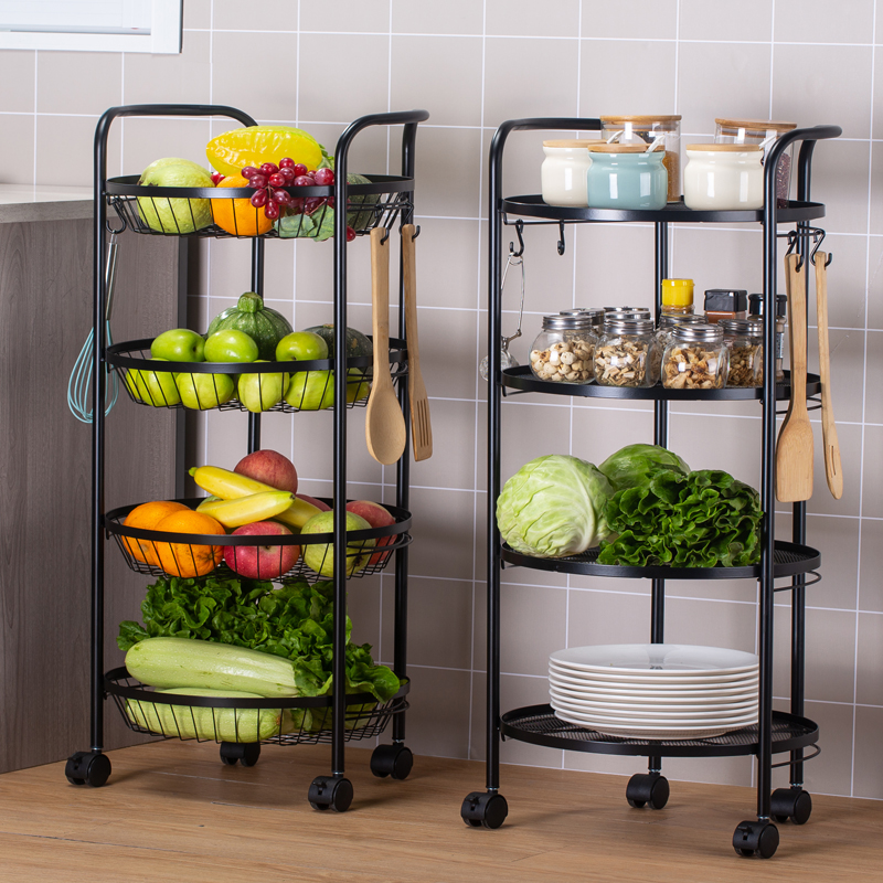 厨房果蔬置物架落地多层转角放锅架多功能可移动菜篮子收纳架圆形