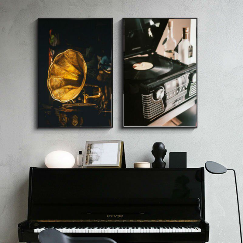复古黑胶唱片留声机装饰画民国风老上海酒吧咖啡厅唱碟机怀旧挂画