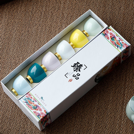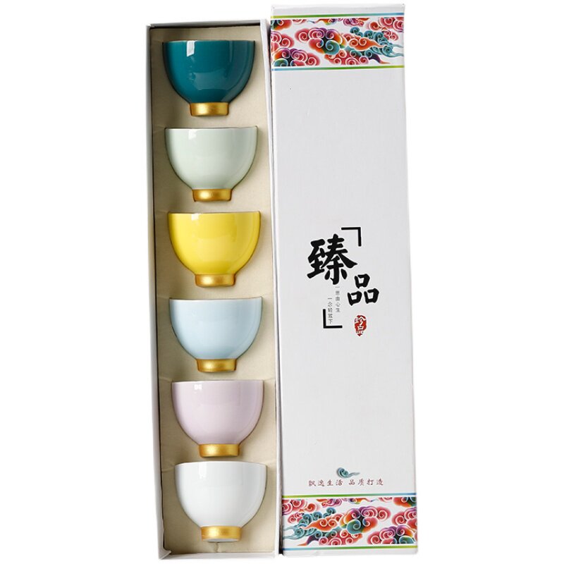 功夫茶杯陶瓷彩虹杯6色描金主人杯创意红茶单杯日式礼盒套装定制