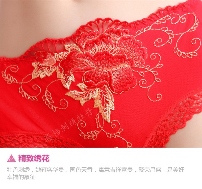 4条装 女士全棉质面料莫代尔三角内裤无痕蕾丝性感中腰纯棉档红色
