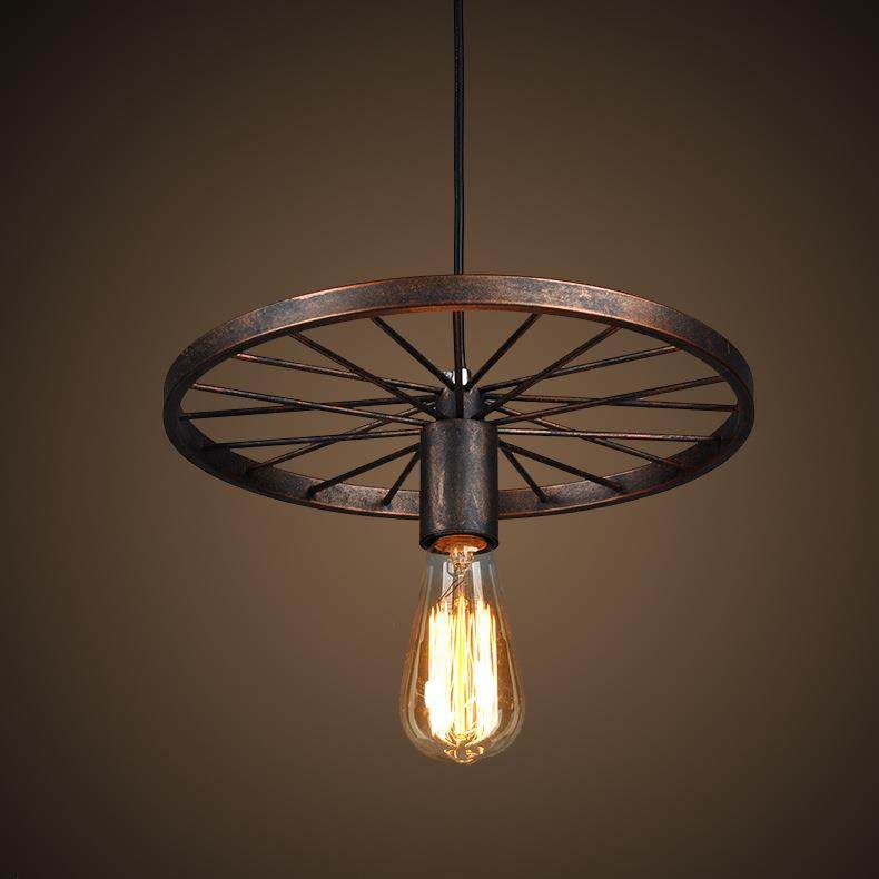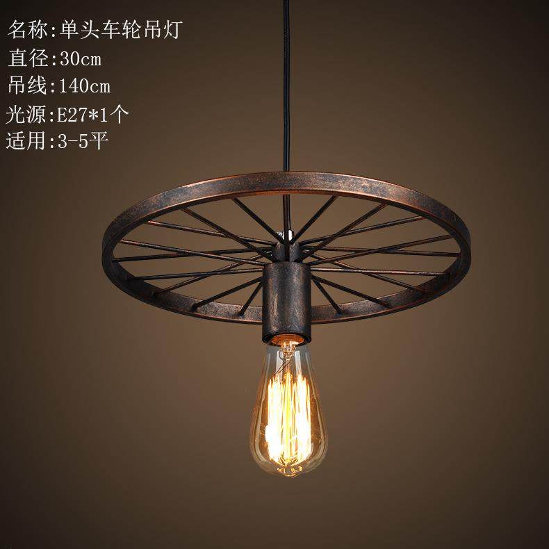 仿古车轮吊灯 复古餐厅咖啡厅寿司店装饰灯具 Loft工业风铁艺吊灯