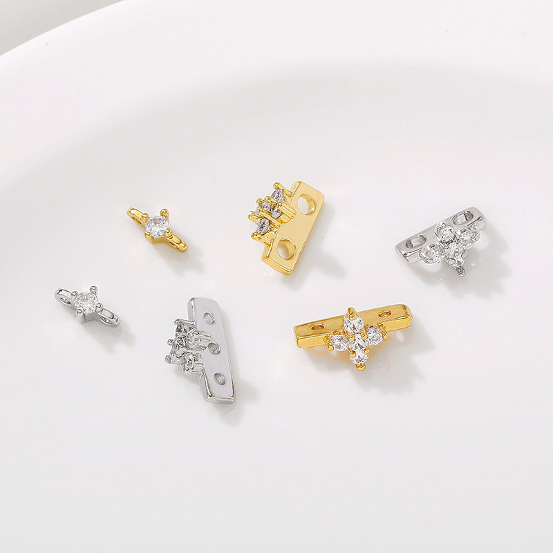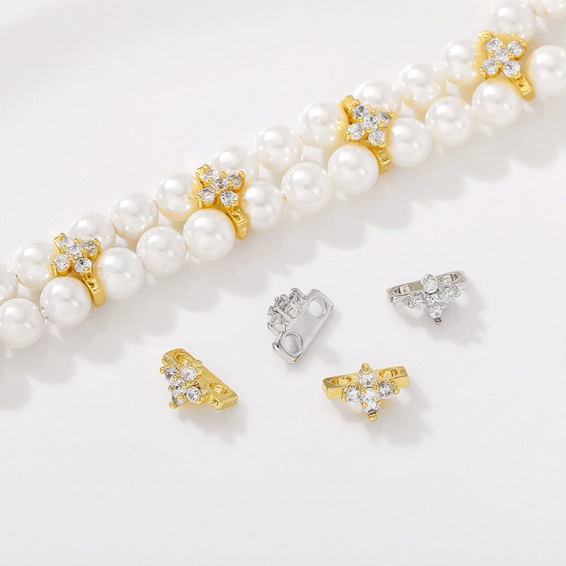 14K包金保色镶锆双排三排串珠隔片手工diy串珍珠手链项链隔珠配件