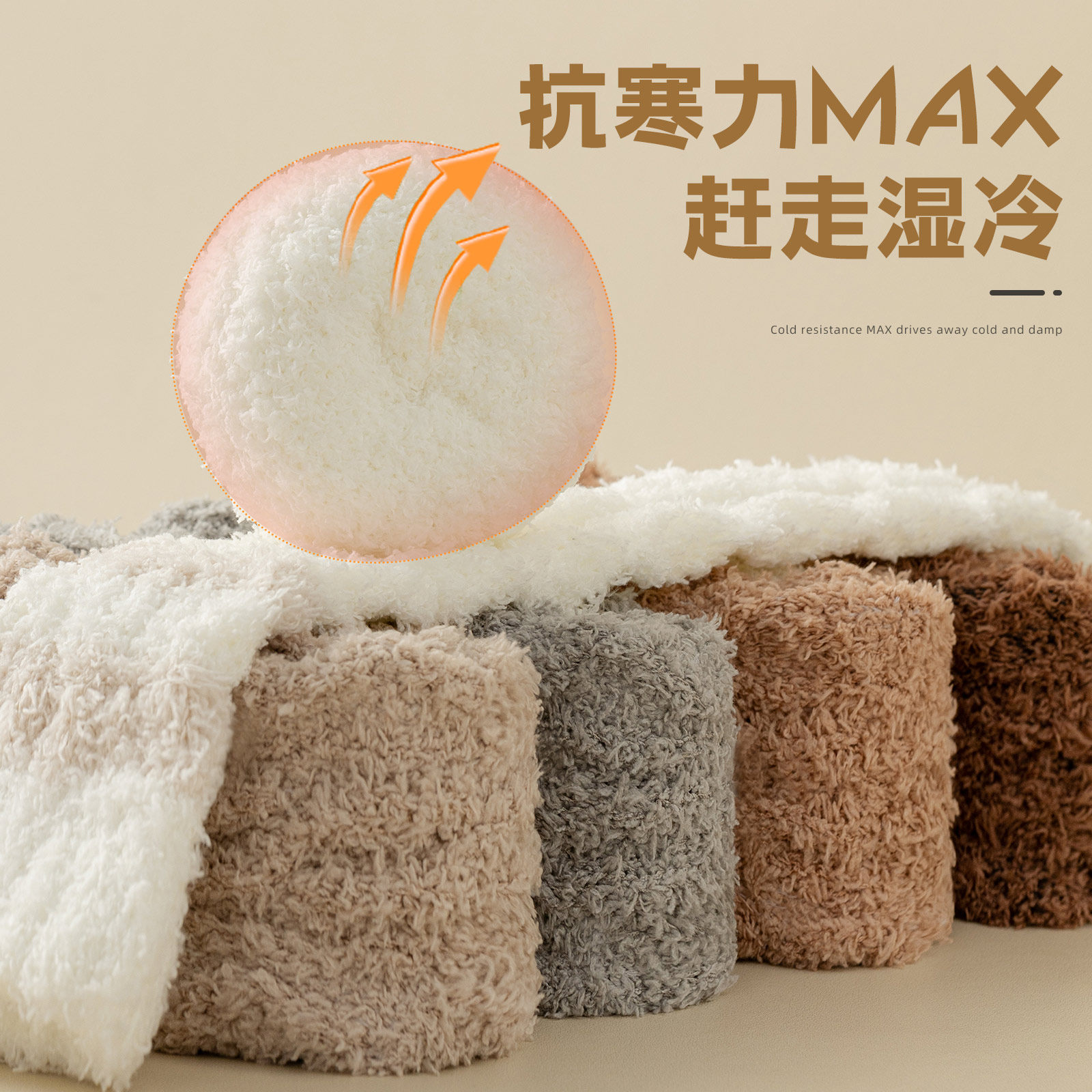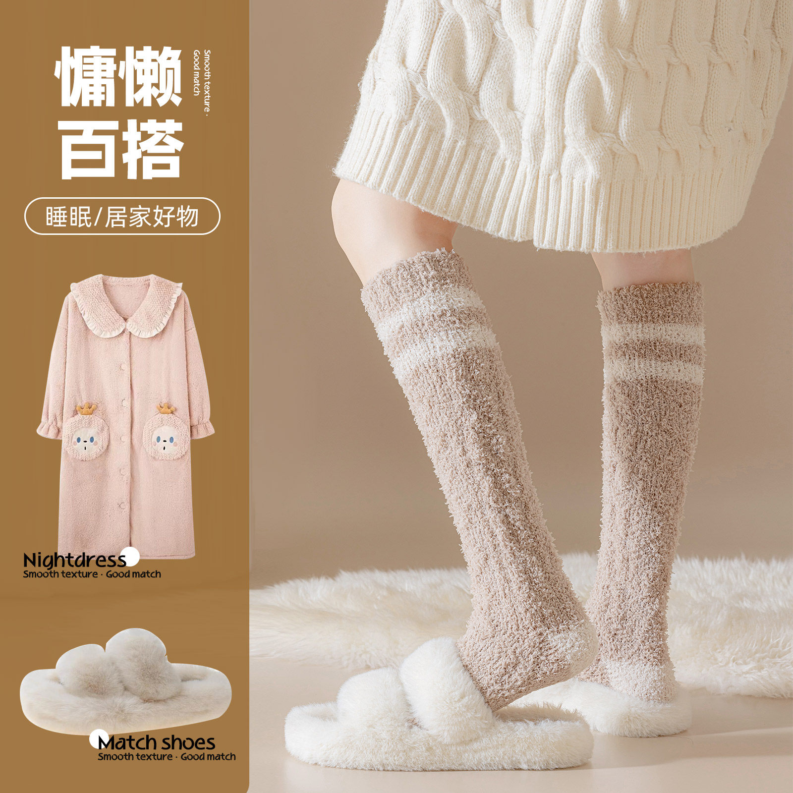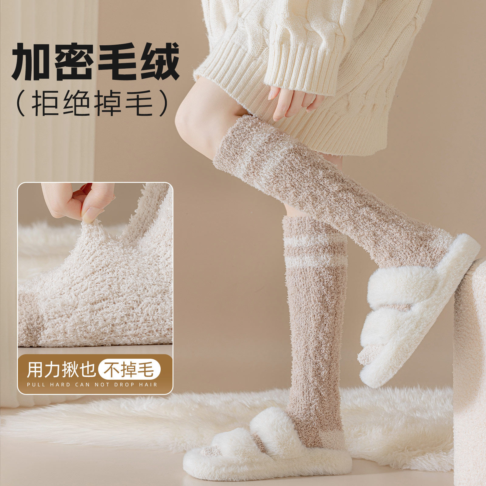 珊瑚绒小腿袜子女秋冬季加绒加厚长筒袜保暖抗寒家居地板袜睡眠袜