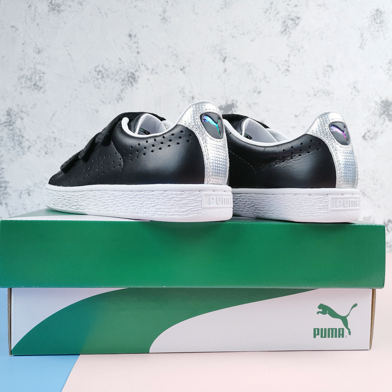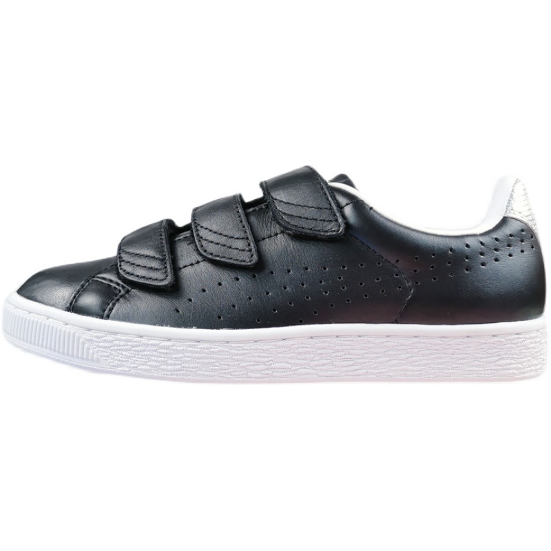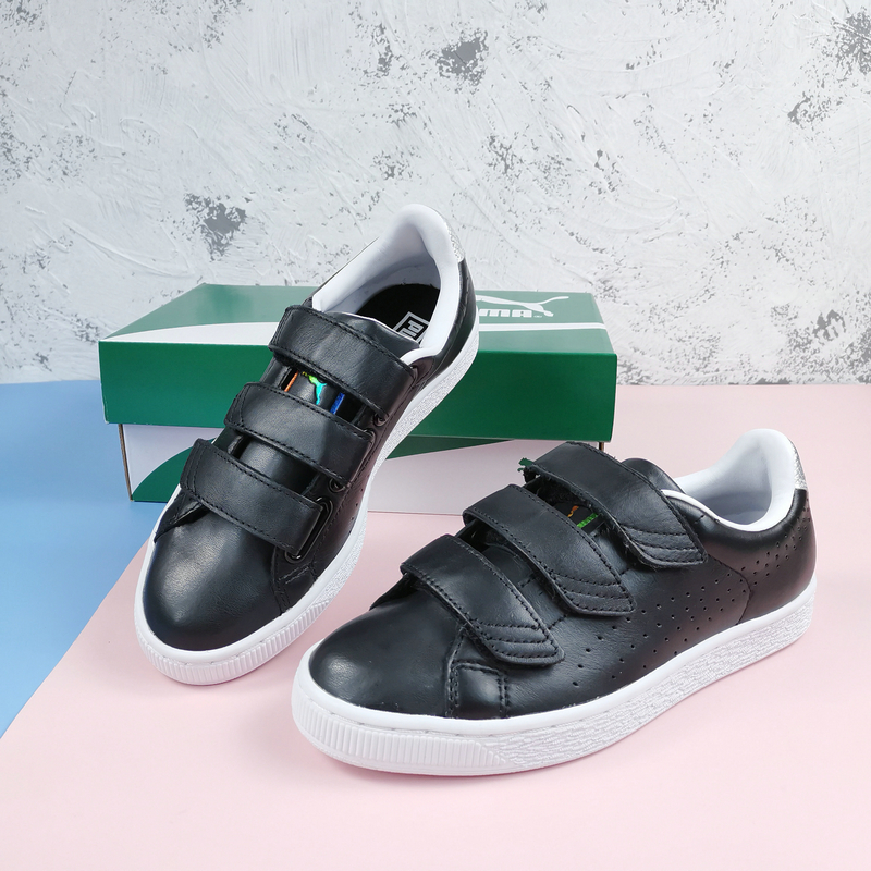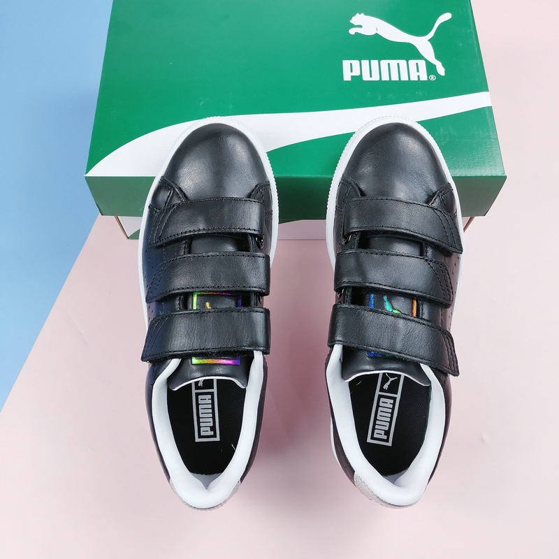 PUMA彪马女子儿童鞋低帮休闲板鞋黑色魔术贴头二层牛皮拼接362741
