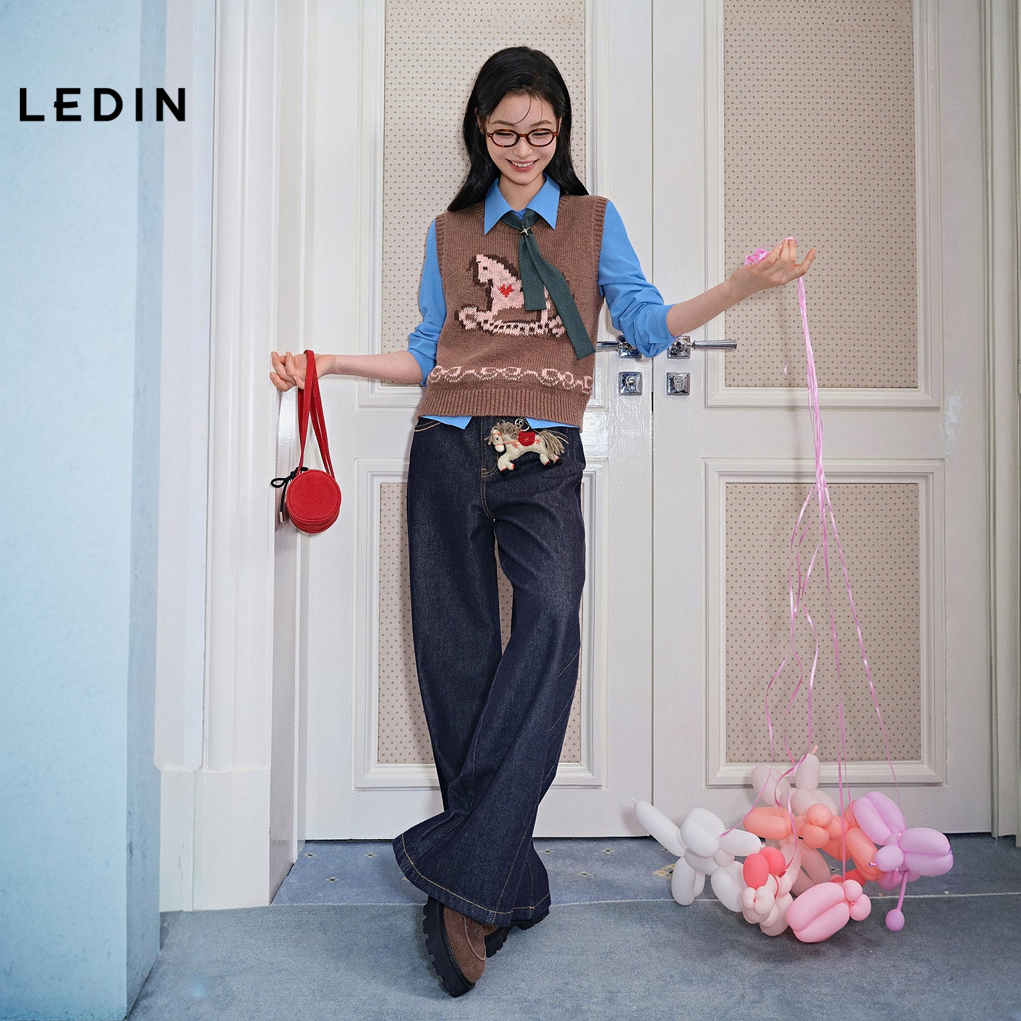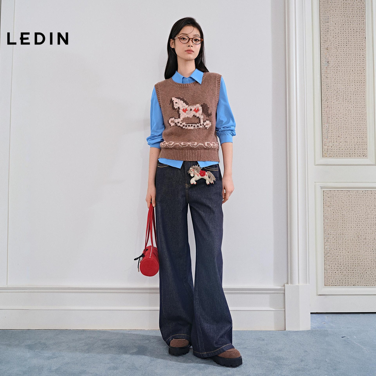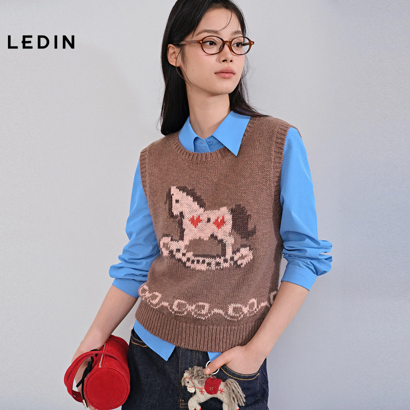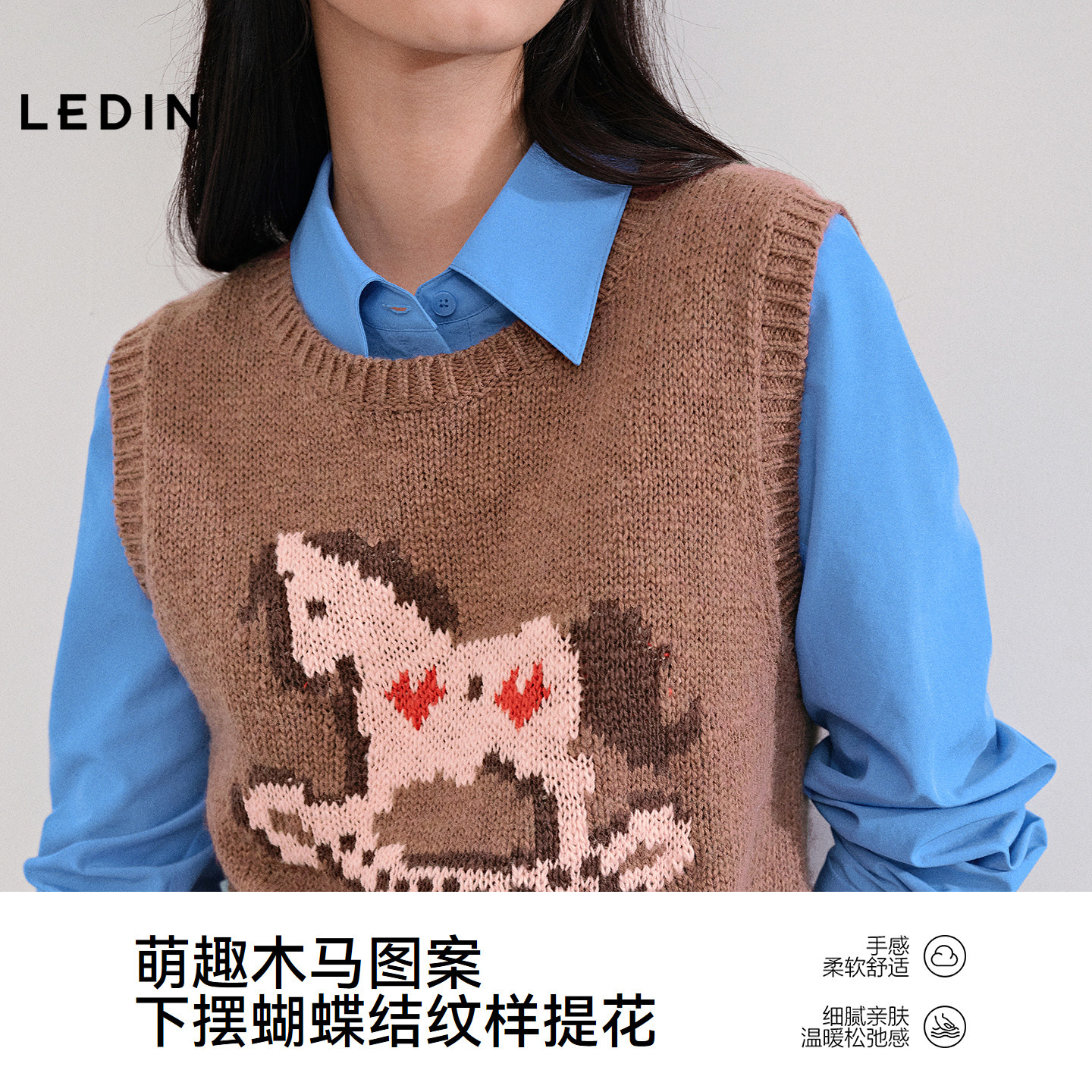 乐町焦糖马毛衣背心秋冬新款新年节日撞色爱心提花圆领套头针织衫