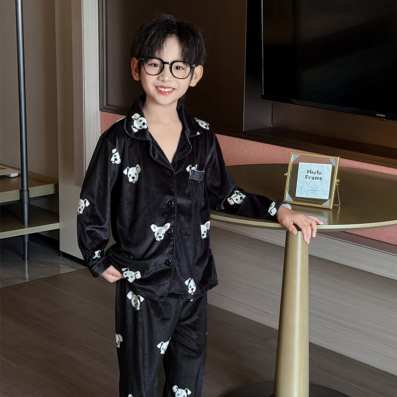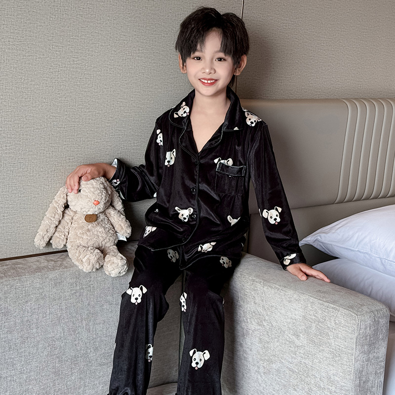 男童金丝绒睡衣秋冬新款儿童保暖家居服套装中大童男孩薄绒童装潮