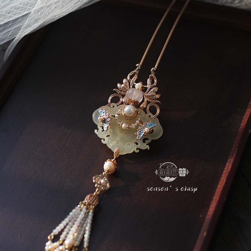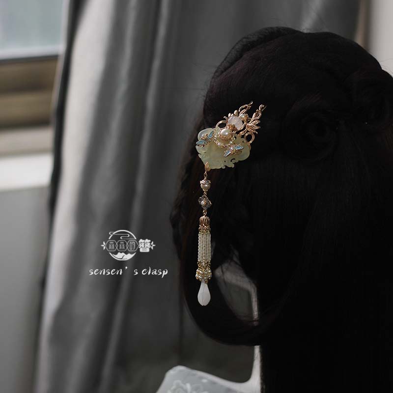 森森的簪丨黛蓝 原创岫玉新中式发簪子 古风烧蓝流苏旗袍汉服发饰