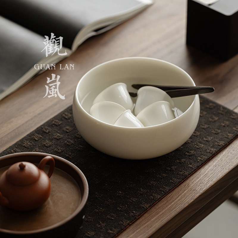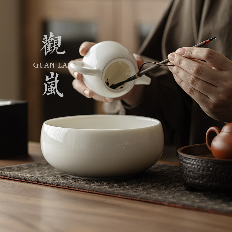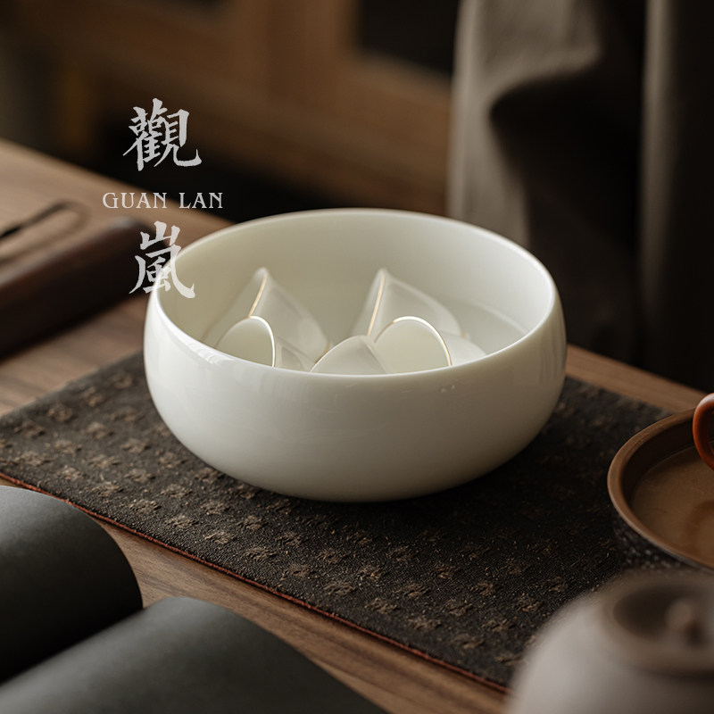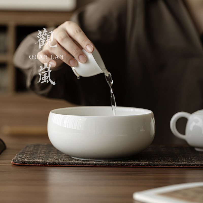 观岚纯色中式茶席羊脂玉白瓷茶洗