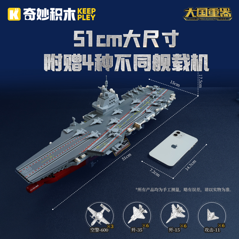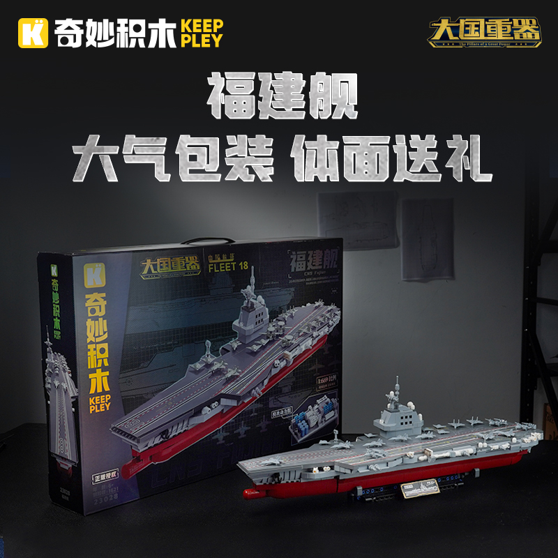 启蒙积木奇妙玩具福建舰航空母舰军事模型拼装积木礼物