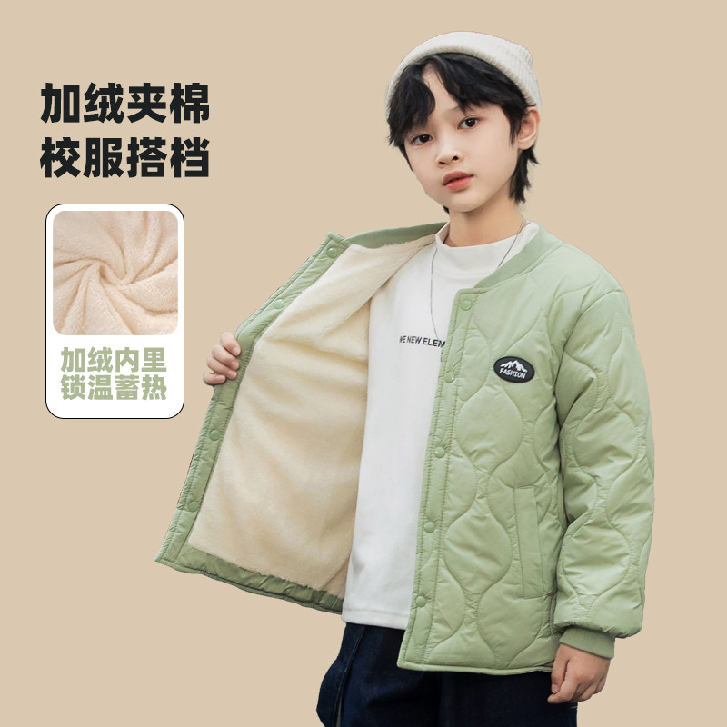 校服内胆男童秋冬棉服外套内穿女童加绒加厚中大童棉上衣外穿冬装