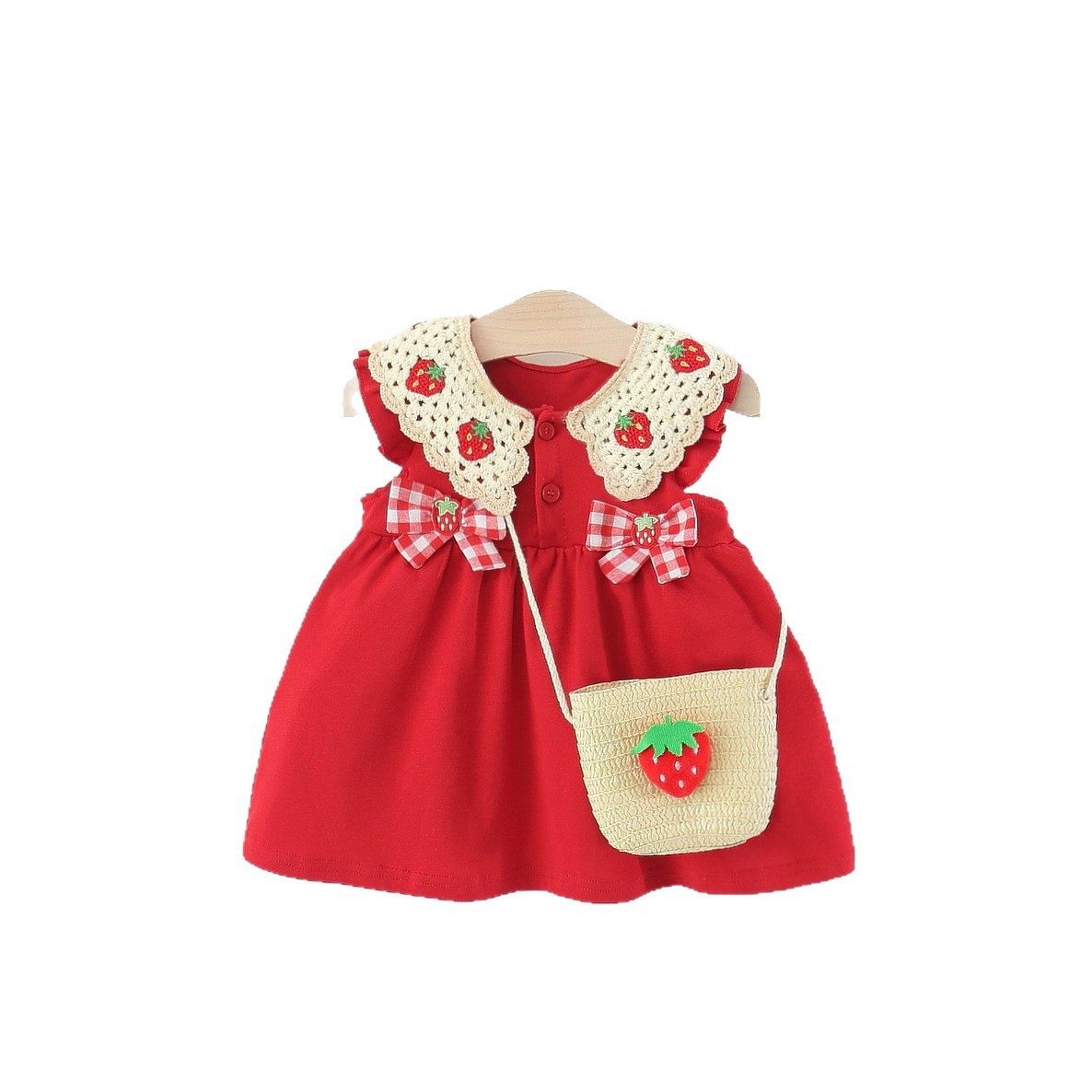 女童无袖连衣裙夏季婴儿童女宝宝蝴蝶结草莓公主裙子洋气小童夏装