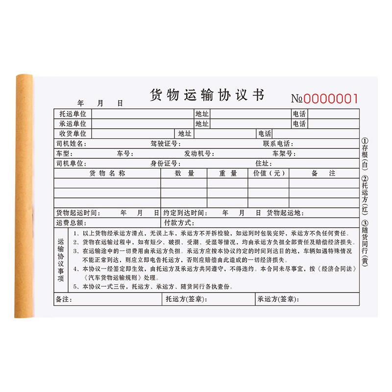 货物运输协议书托运单据承运签收单货站运单运费结算收据物流合同
