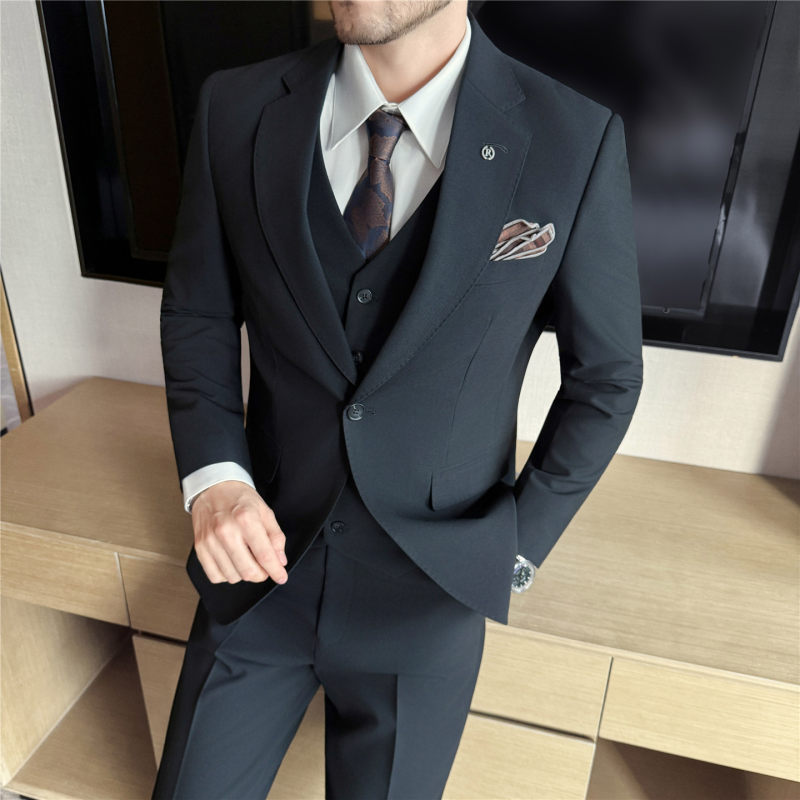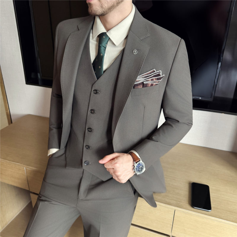 轻奢英伦西服男套装修身职业高级感商务正装新郎结婚高定西装礼服