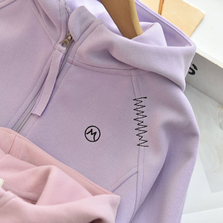 lu风|女童纯色实用大方刺绣连帽开衫外套 中大儿童百搭外穿上衣春