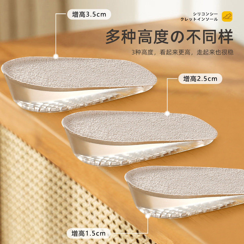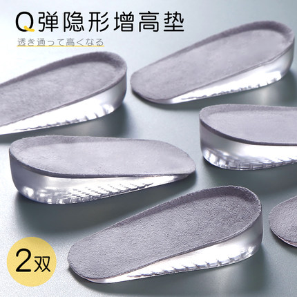 正高2双装 硅胶隐形内增高鞋垫男士女增高垫半垫马丁靴小个子夏季