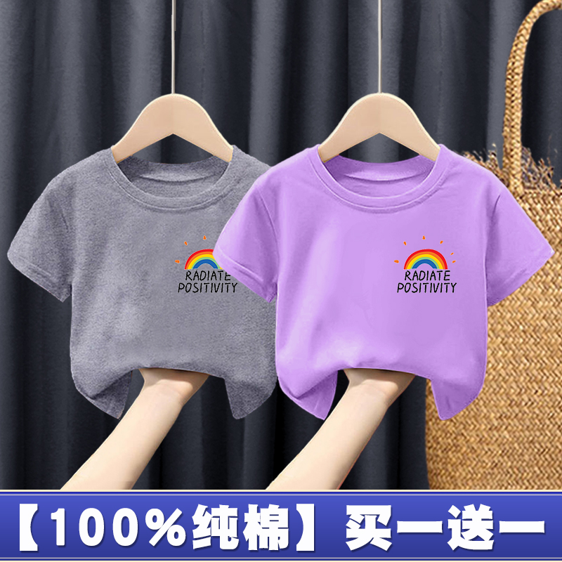 100%纯棉女童短袖T恤夏装2025新款洋气女孩子宝宝童装上衣打底短T
