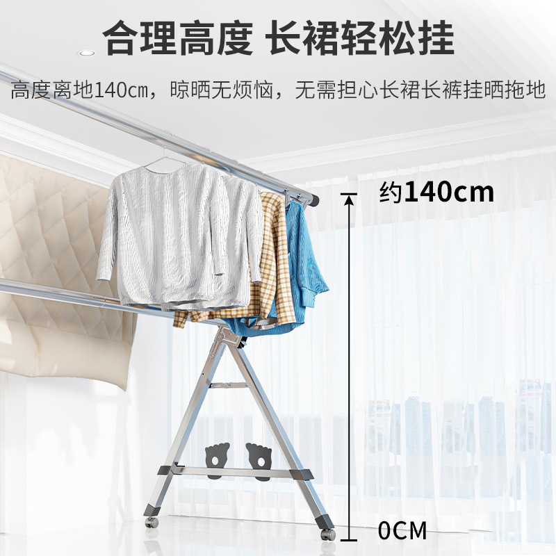 不锈钢伸缩晾衣架落地折叠室内晾衣杆阳台L家用晒衣架子晒被子神