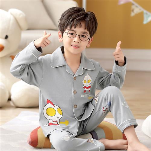 男童睡衣春秋长袖纯棉儿童套装薄款套装大小男孩中大童家居服小萌