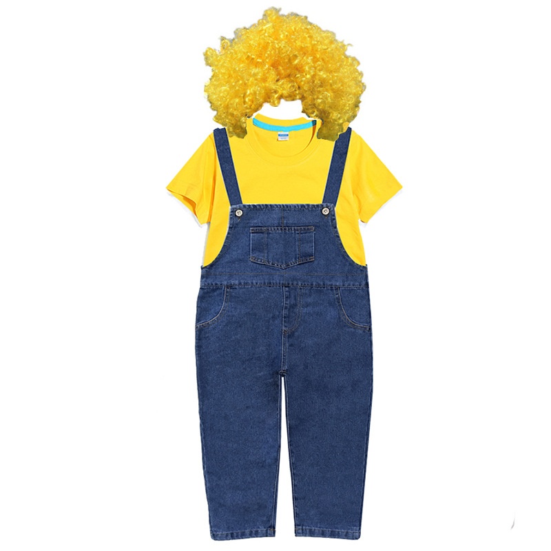 元旦儿童演出服小黄人表演服幼儿园男女童可爱牛仔背带裤套装