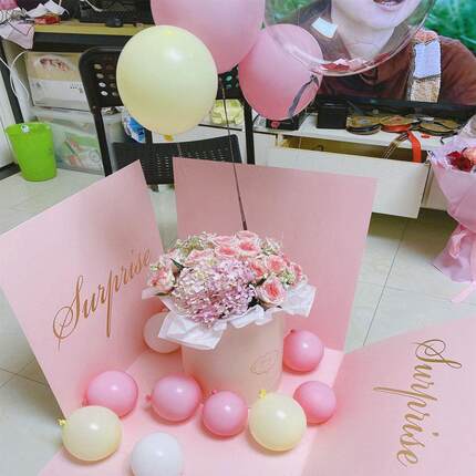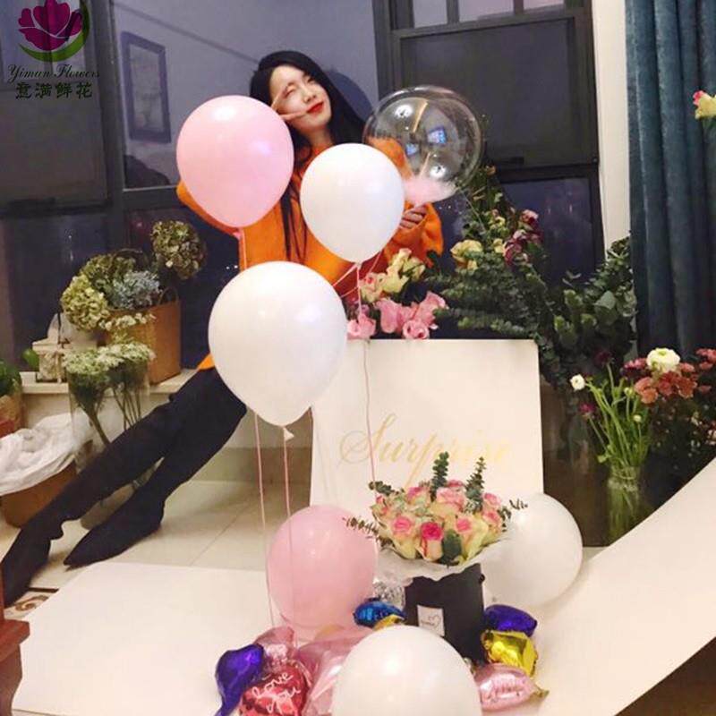 同城鲜花速递天津向日葵混搭玫瑰创意惊喜礼盒告白气球七夕送女友
