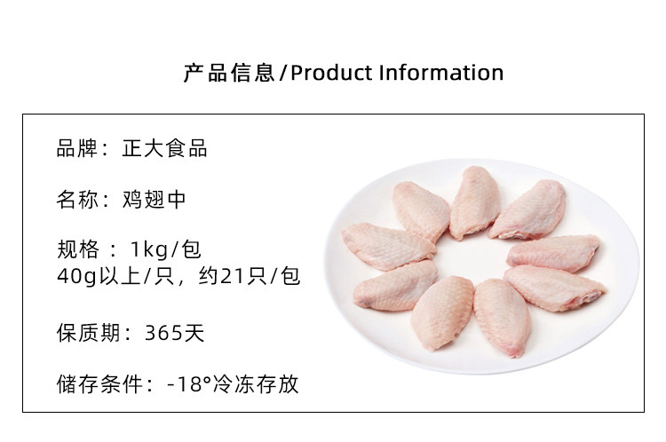 正大单冻鸡翅中 1kg 生鲜翅中烧烤奥尔良烤鸡翅 中翼 冷冻鸡翅