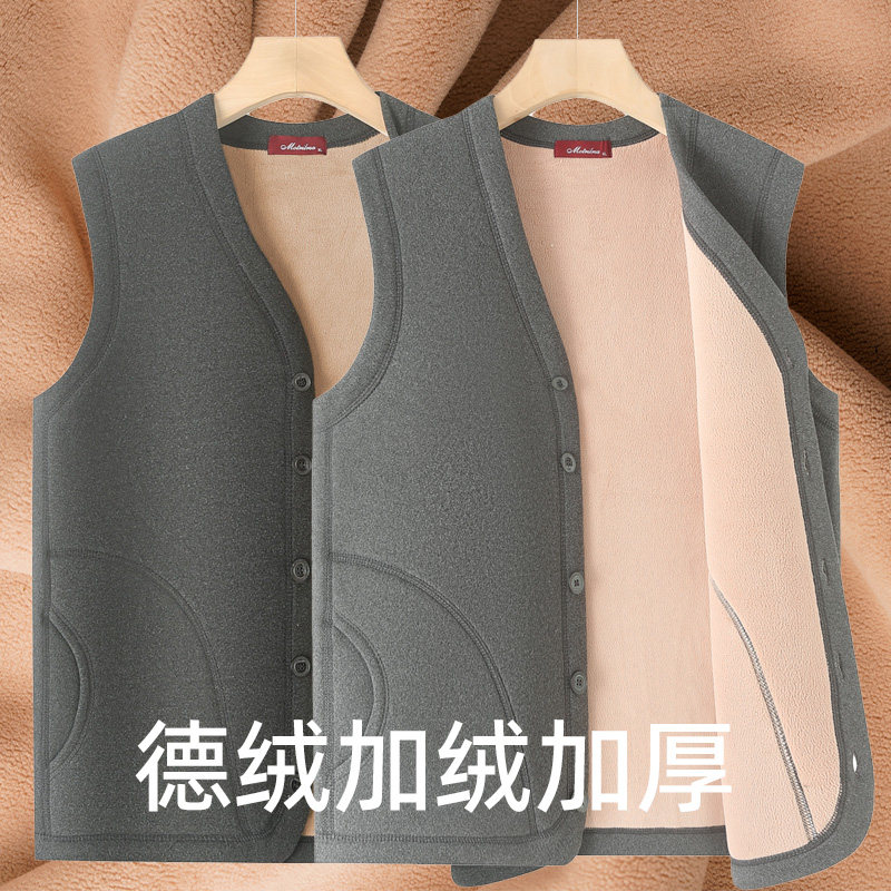 秋冬季男士新款开衫背心马甲加绒加厚羊羔绒坎肩防风保暖柔软舒适