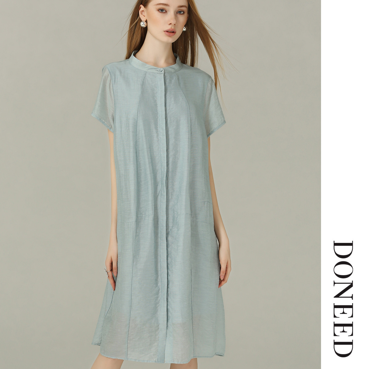 DONEED极简风设计感打褶立体裁剪茧型显瘦2025夏款天丝中长连衣裙