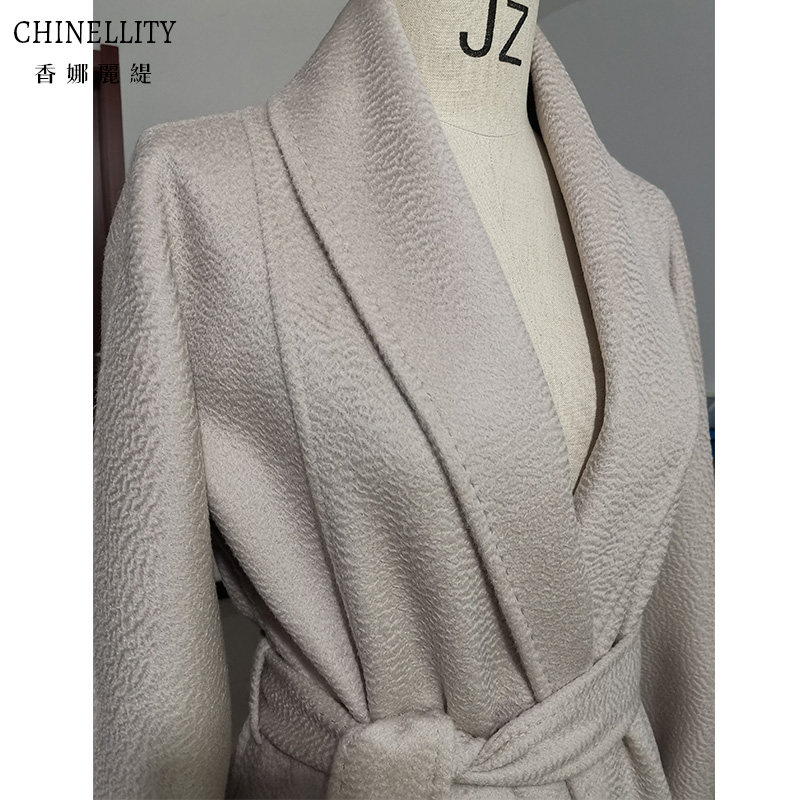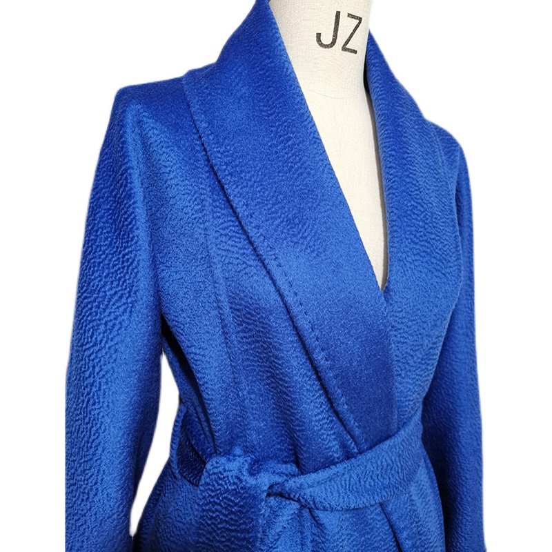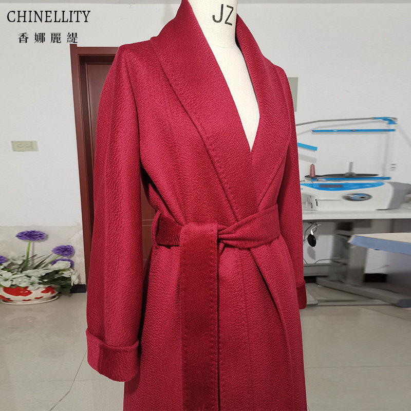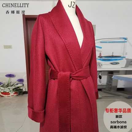 水波纹双面羊绒大衣高端红色蓝色黑翻领中长款秋冬新款羊毛外套女