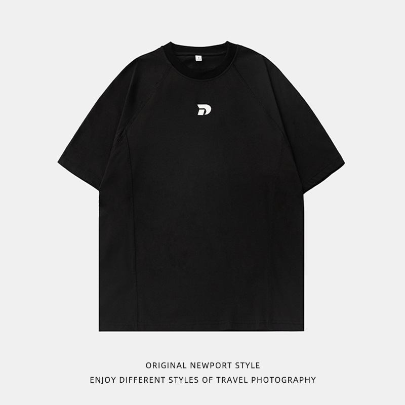 夏季分割明线设计凉感短袖T恤潮牌质感印花户外运动宽松体恤衫