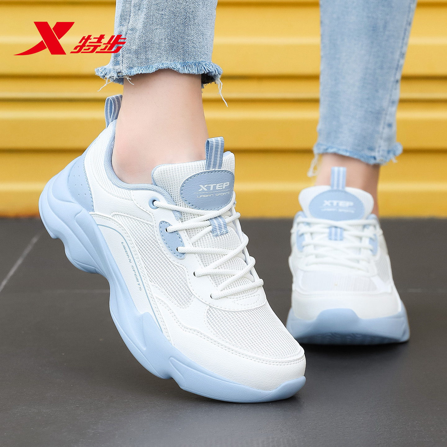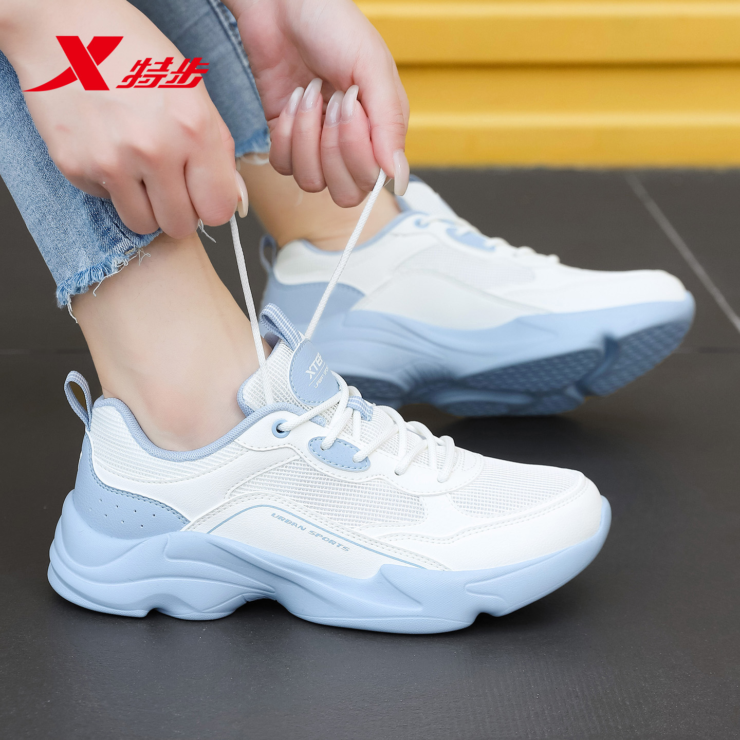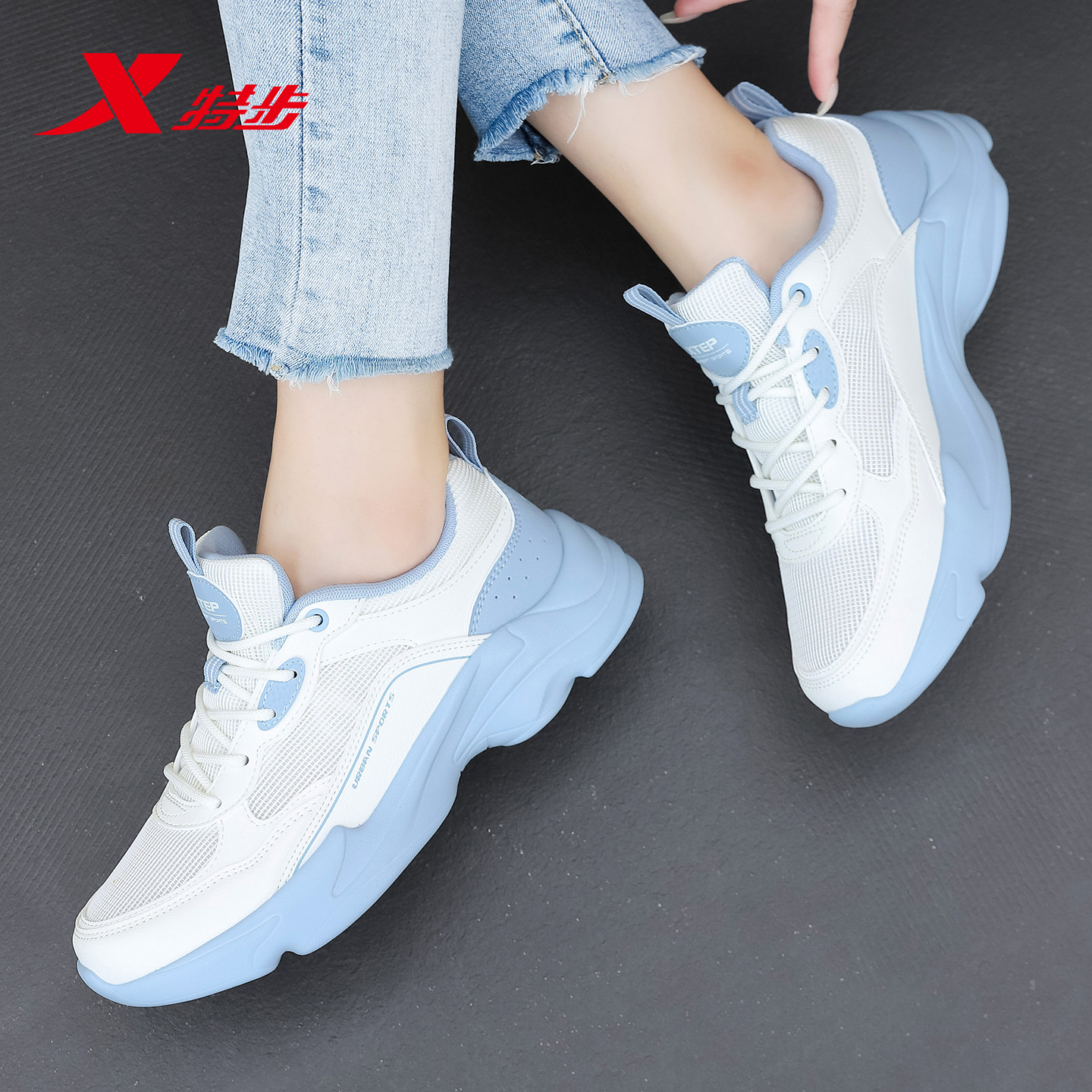 特步女鞋老爹鞋透气网面运动鞋女