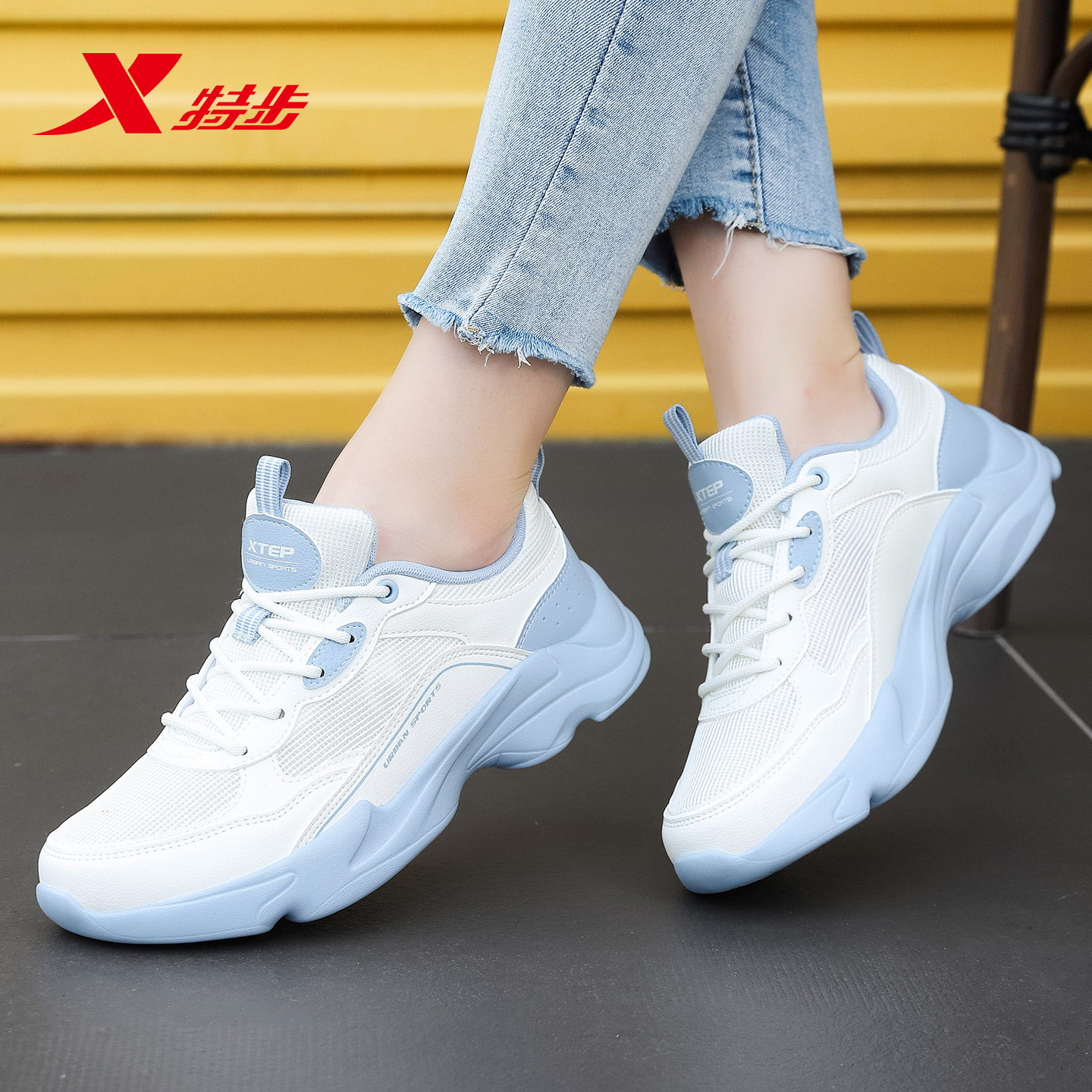 特步女鞋老爹鞋秋季薄款网面透气官方旗舰正品跑步鞋子女士运动鞋