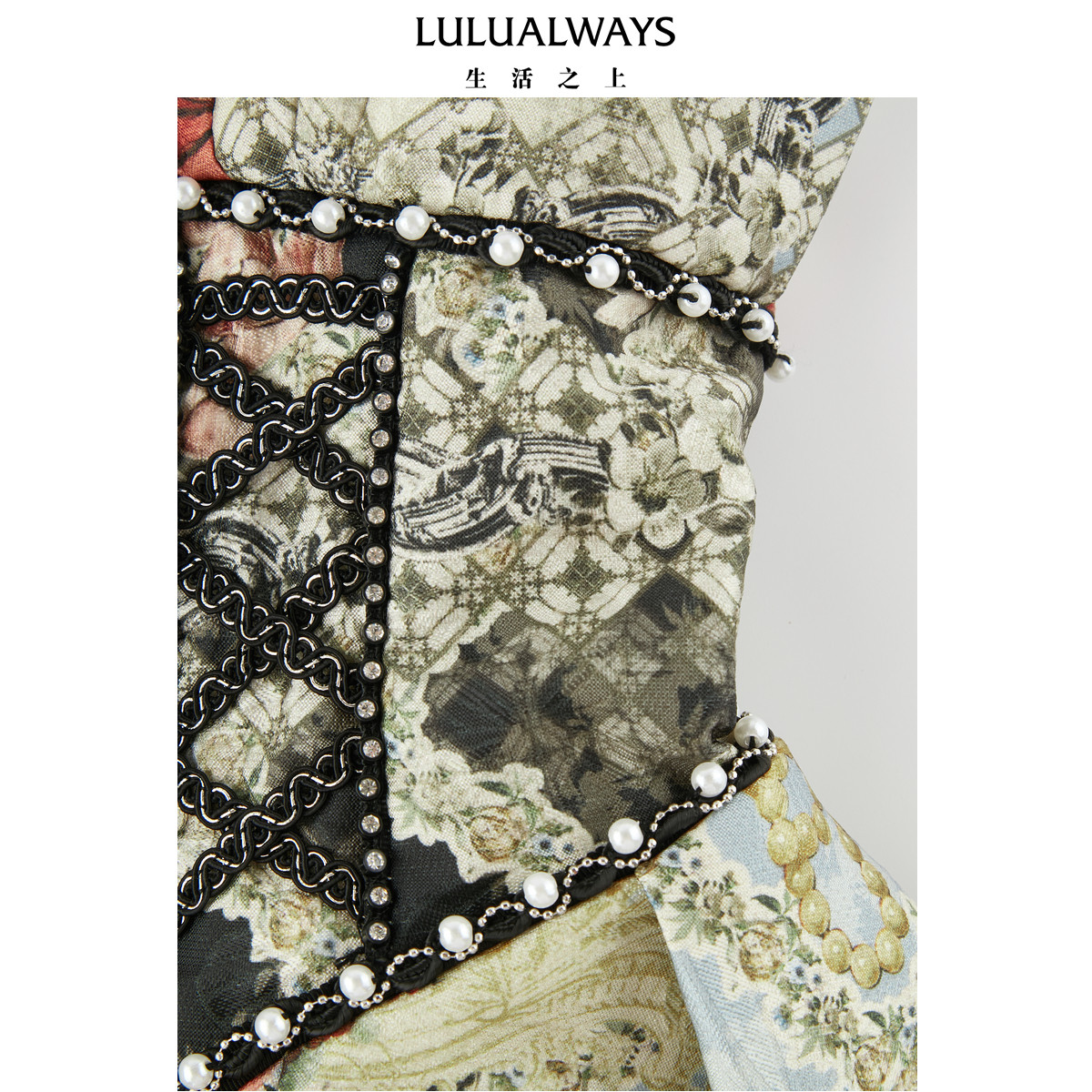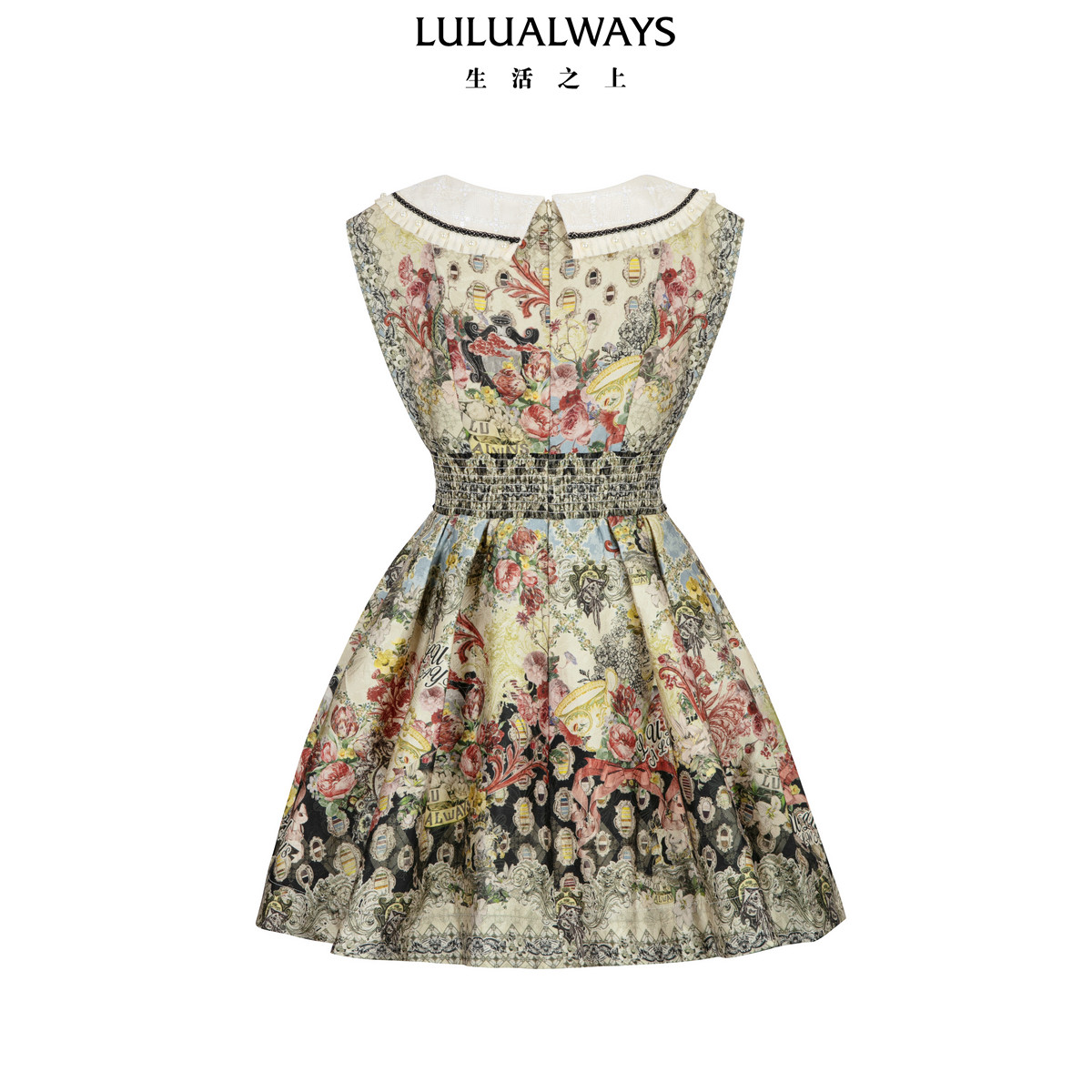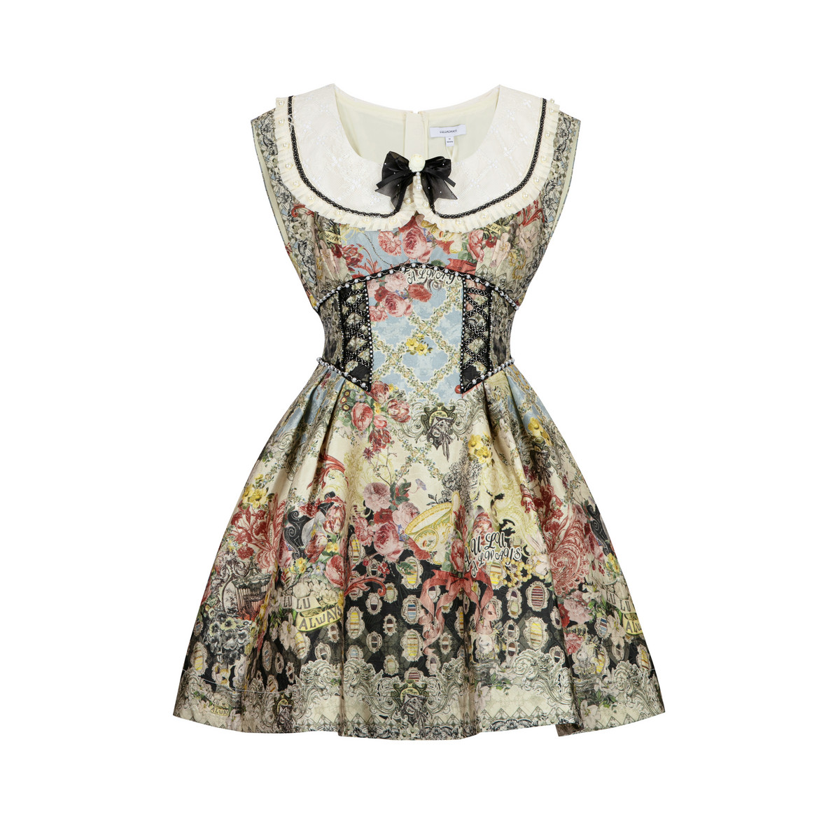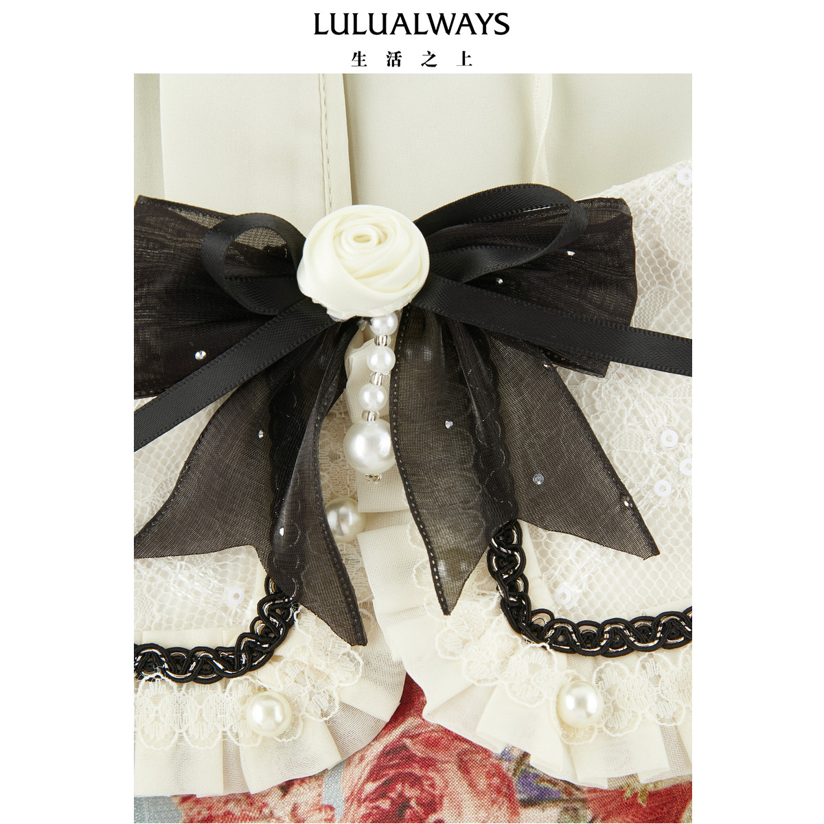 LULUALWAYS【商场同款】优雅复古蝴蝶结修身提花连衣裙