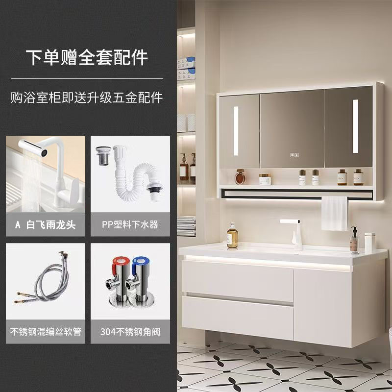 智能浴室柜陶瓷一体盆洗脸盆柜组合洗手池卫生间洗漱台面简约实木