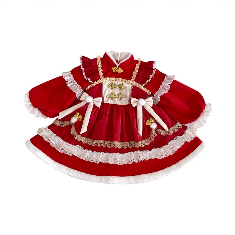 2023冬女童新年拜年服罗莉塔公主连身裙红M色喜庆中国风蓬蓬裙加