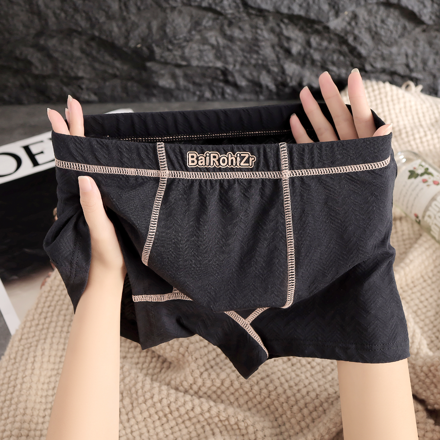 棉质透气男士四角裤弹力时尚性感男士平角内裤中腰大码平角裤