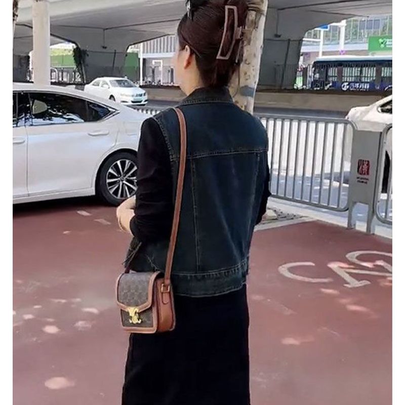 时尚百搭怀旧牛仔马甲女春秋新款宽松洋气减龄妈妈装背心夹克外套