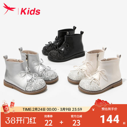 红蜻蜓女童鞋公主短靴子洋气加绒