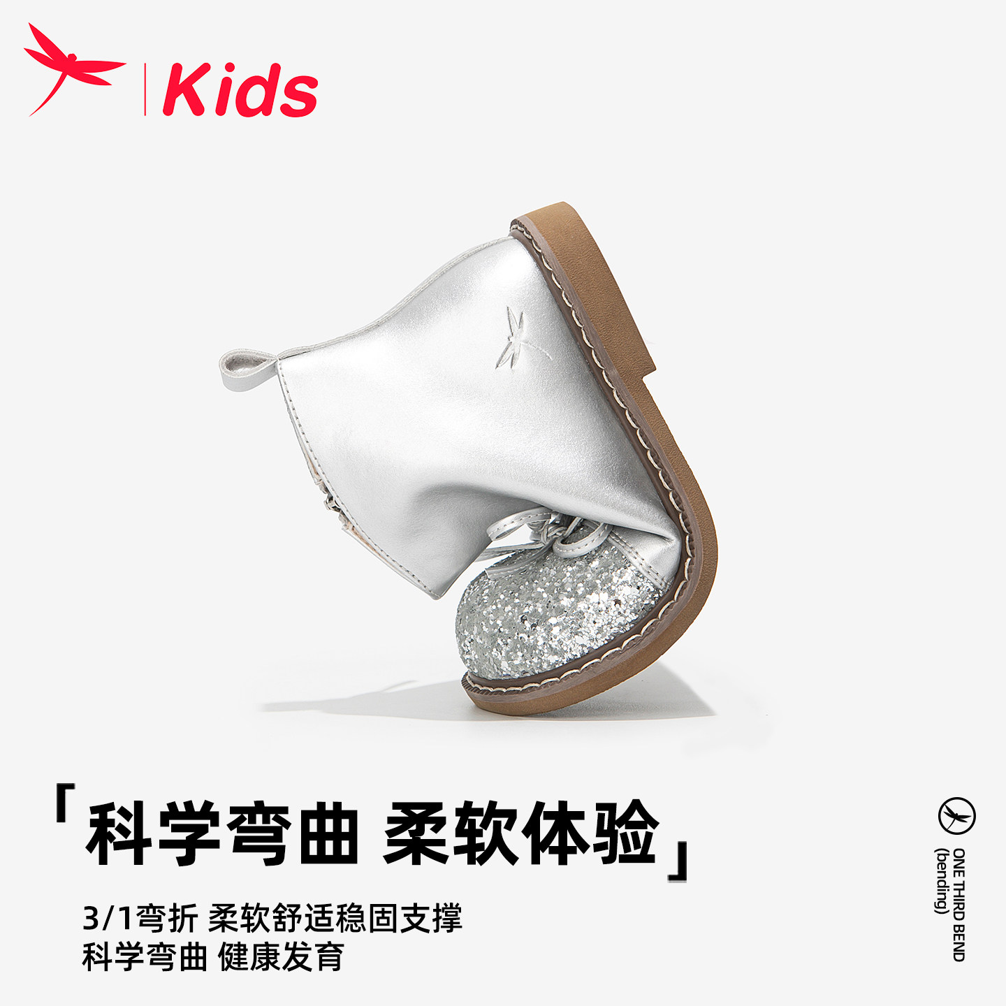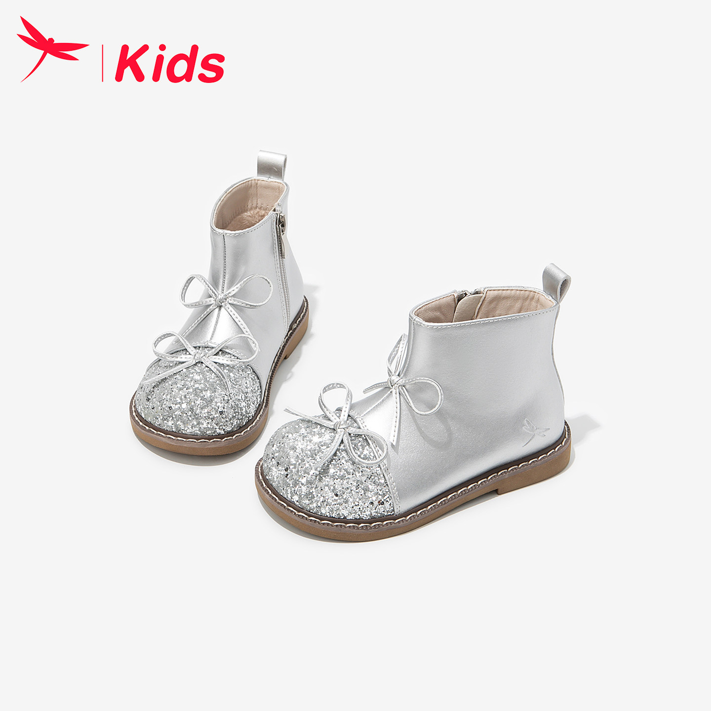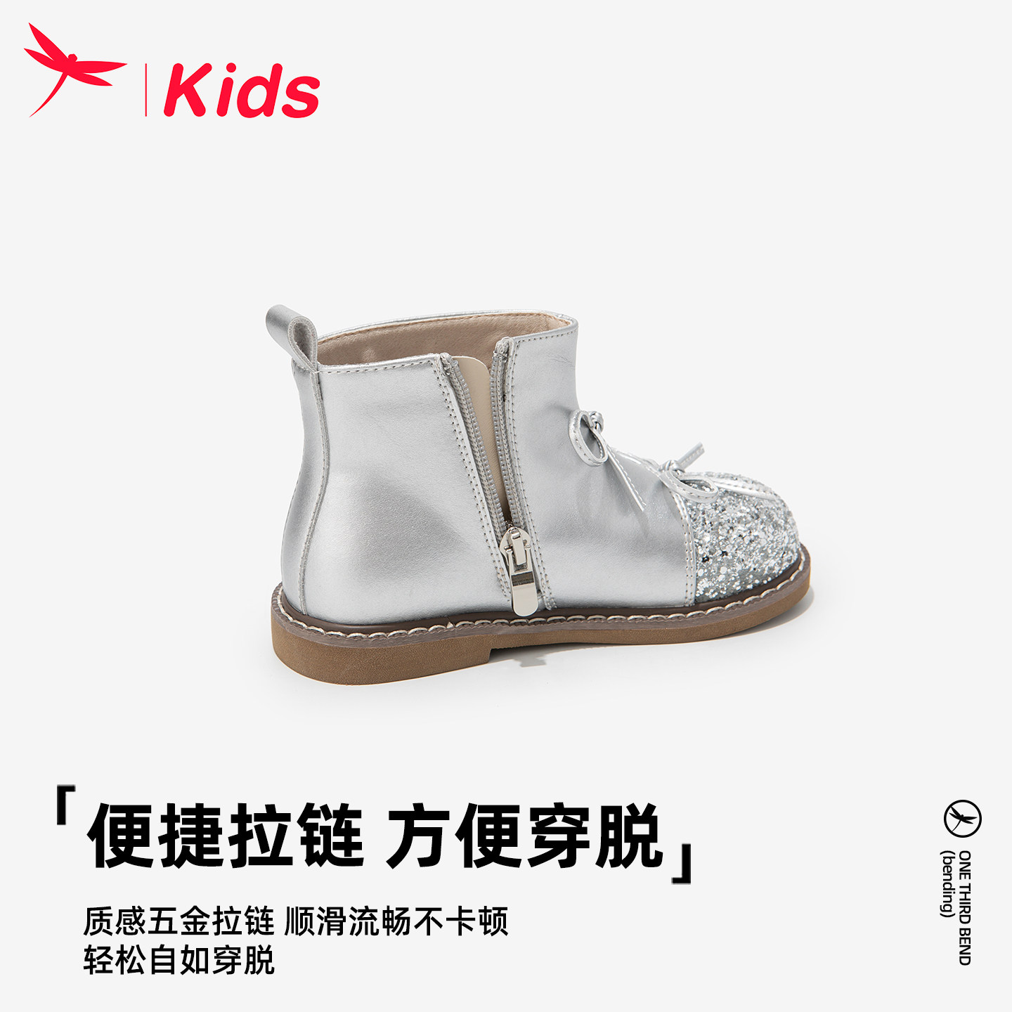红蜻蜓女童鞋儿童艾莎公主小短靴子2026新款冬季加绒宝宝皮鞋洋气